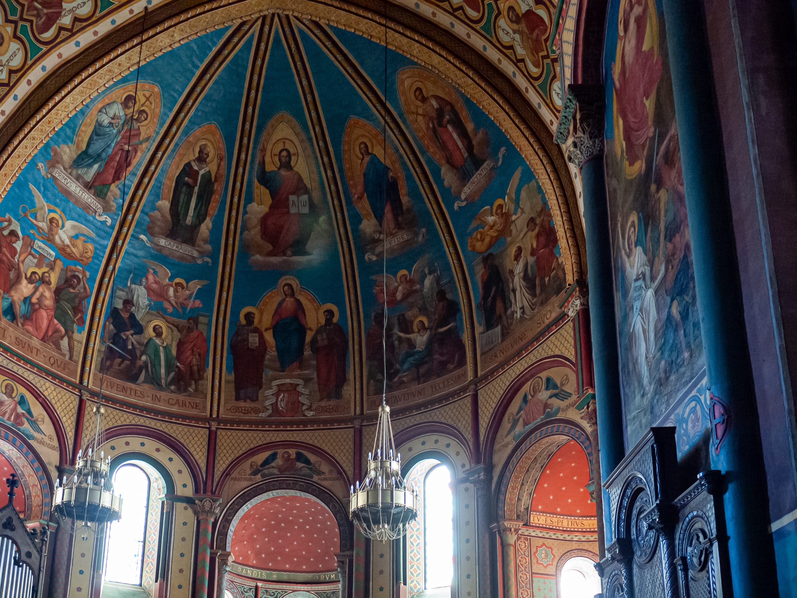 We window-shopped and checked out the cathedral (an interesting mix of architectural styles, it was ornately painted and had a striking Romanesque nave) and ended up over at the river where we each took thousands of photos of the viaduct we’d crossed the evening before.