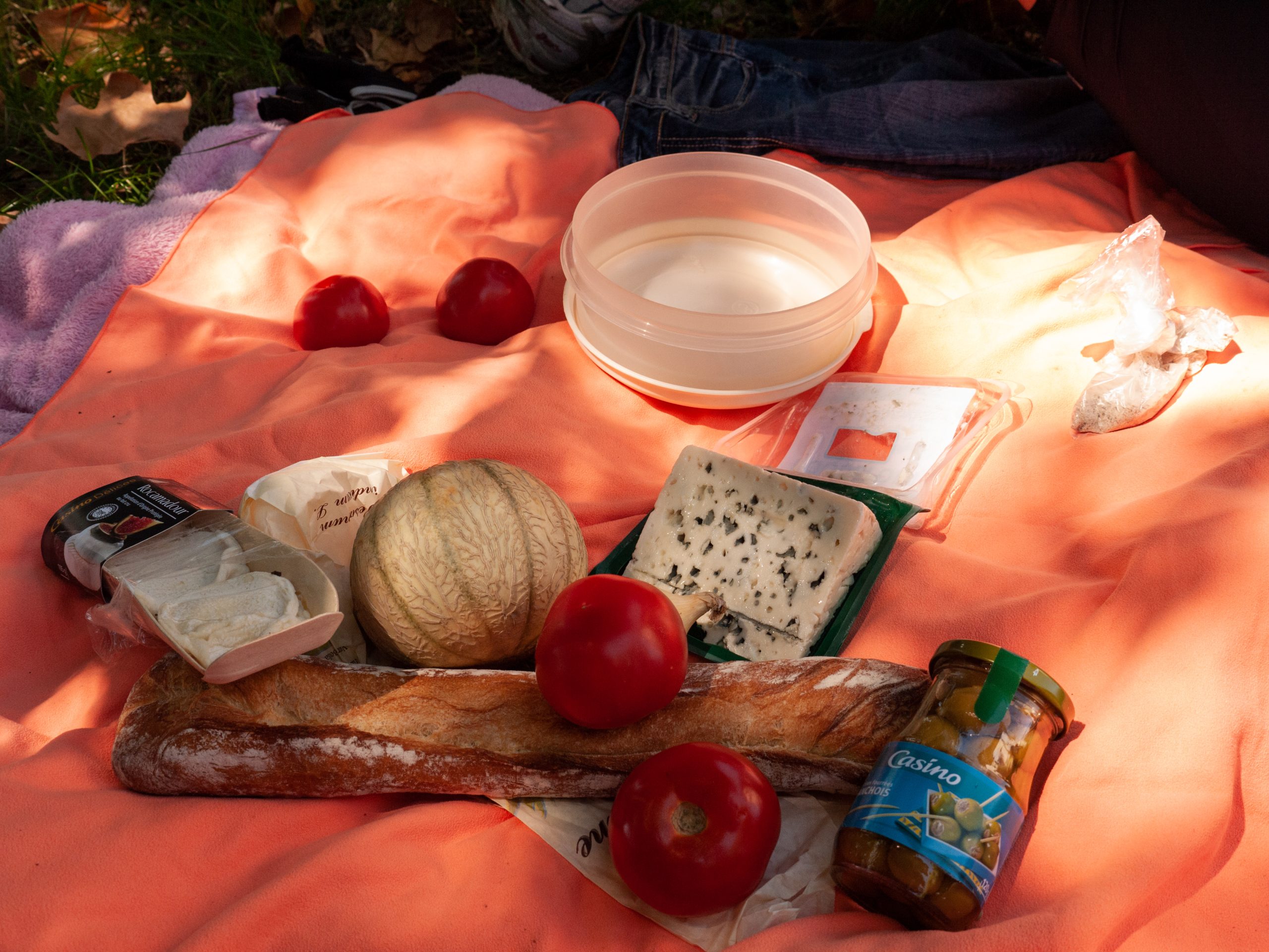 After an hour and a half of riding our stomachs were starting to growl (well at least mine was…) so we started watching for a picnic site. My dream of verdant grass in the cooling shade of a plane tree didn’t seem to be panning out but Vera’s sharp eye spotted a break in the bushes. We made our way through and discovered an abandoned railway station. Around on the other side of the station there were indeed plane trees which provided us with shade. Although the grass was rather sparse it made an interesting picnic spot. We spread out our food and enjoyed our feast of bread, cheese, tomatoes, olives and melon.
