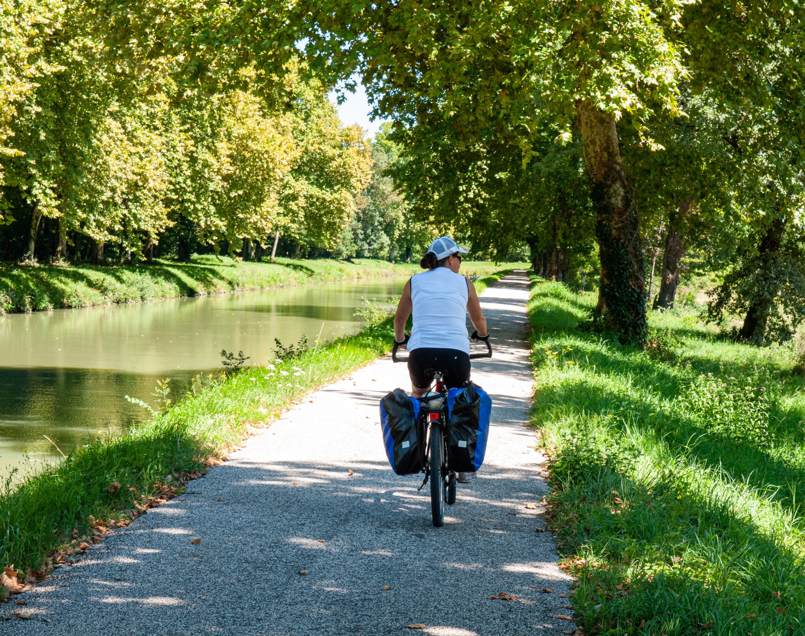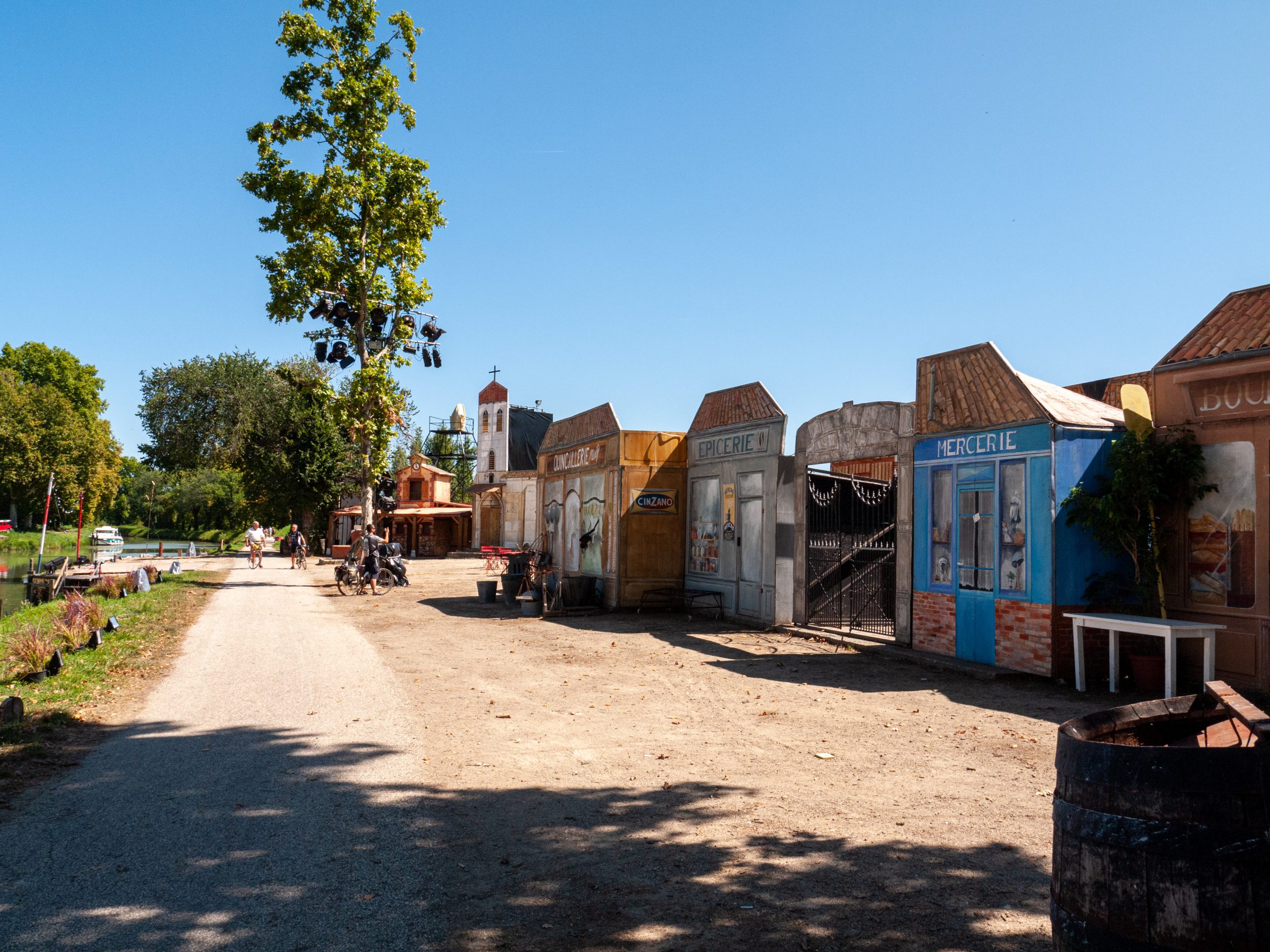 The remainder of the afternoon was more of what we’d seen the previous day – lots of boaters, many of whom gave a friendly wave, a lock every 1-5 kilometers and from time to time a picturesque village on a neighboring hill. Today, one particular town was quite interesting… at Valence they’d made an open-air stage along the canal and we rode right through the scenery. On the opposite side were grandstands for the viewers. Apparently the evening shows tell the story of life on the canal in earlier times. I must say, I’ve had plenty of stage experience in my time, but this was the first time I’d ridden across one on a bike.