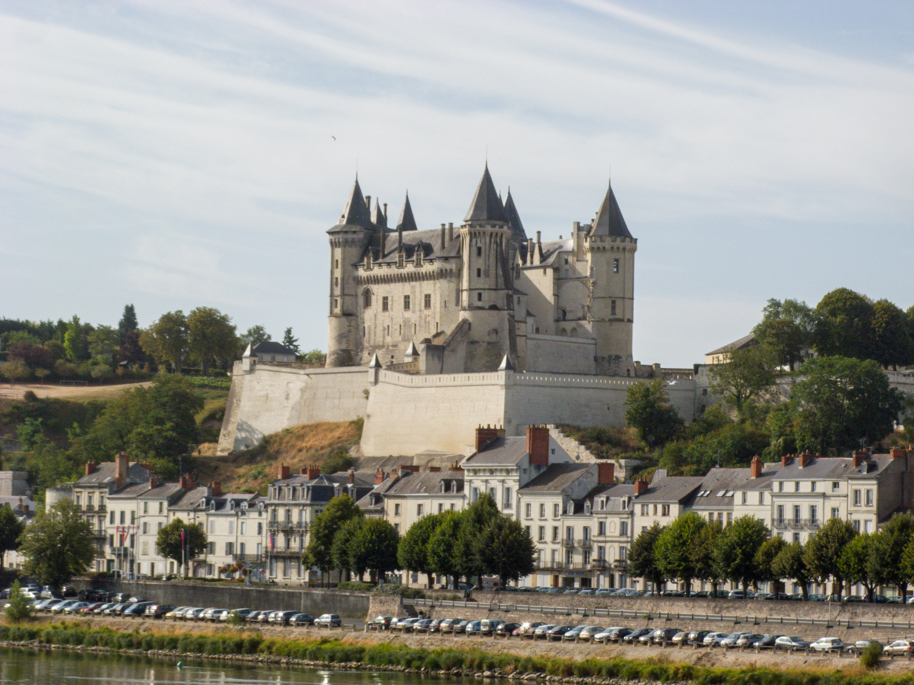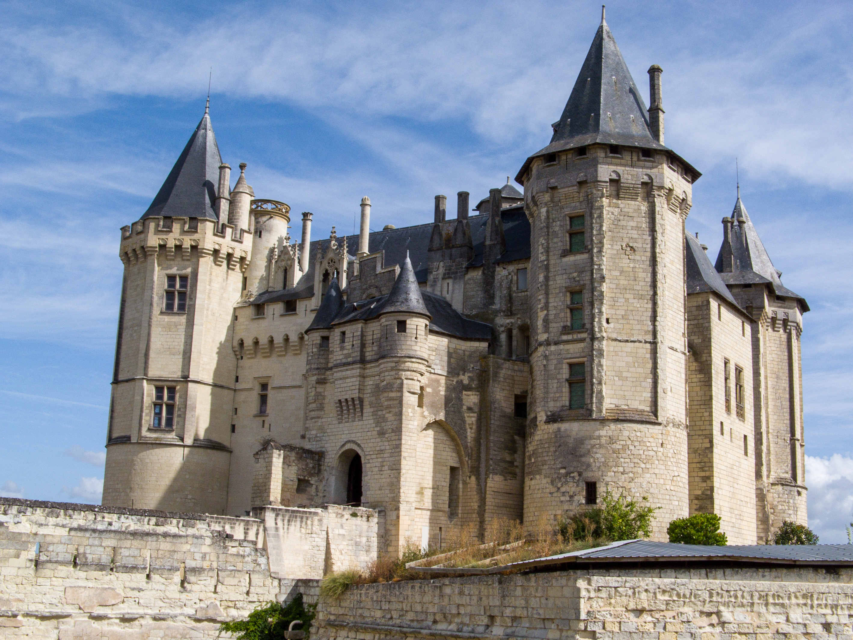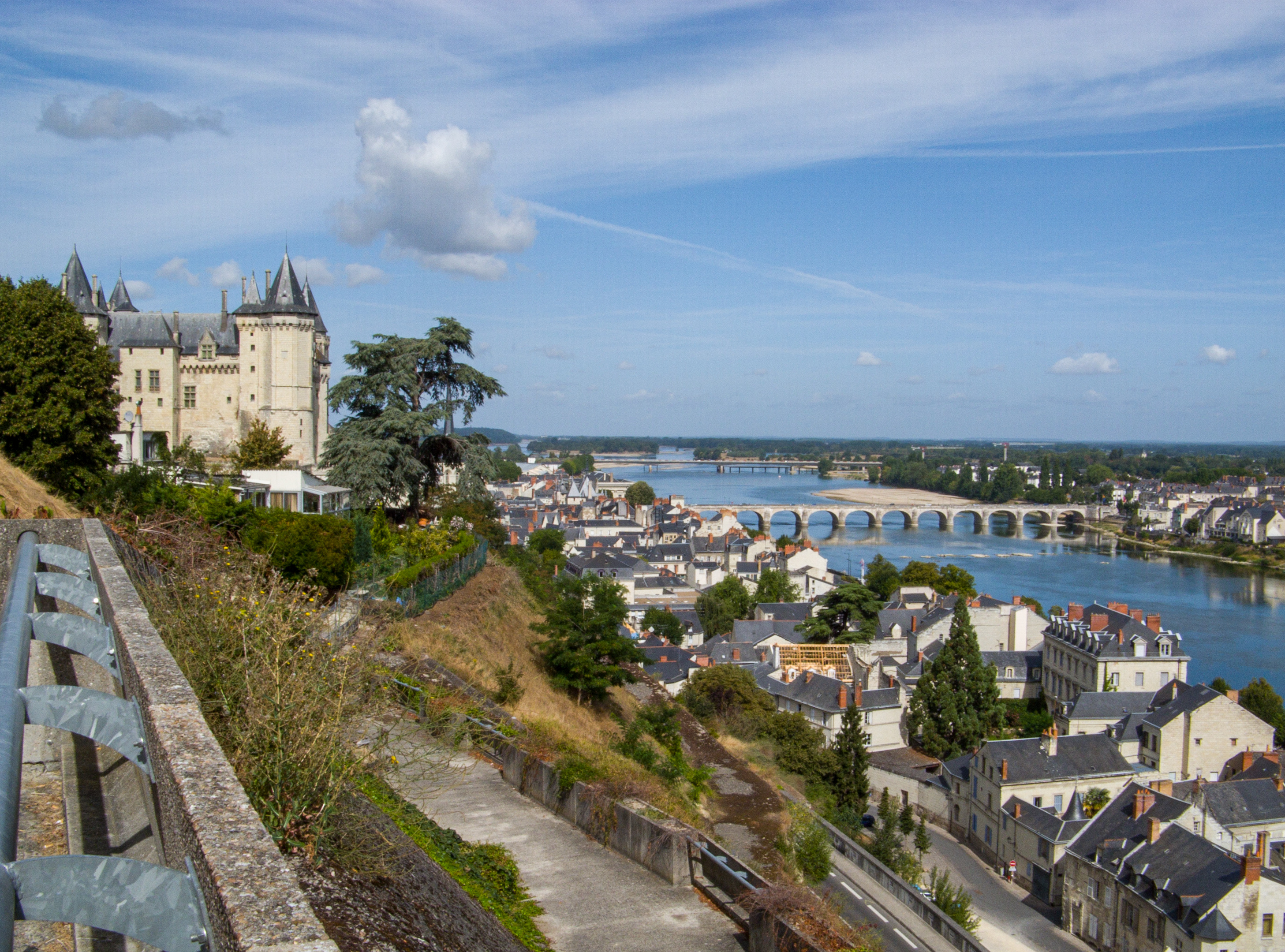I arrived in Saumur at about 10 and spent a pleasant hour wandering through the town and enjoyed a coffee and pear tarte in a café located on a square with a very cool cast iron fountain. The next challenge was getting up to the chateau—pushing my bike up the hill (and carrying up a few steps) with my knee throbbing. Ugh. Lots of ibuprofen today.