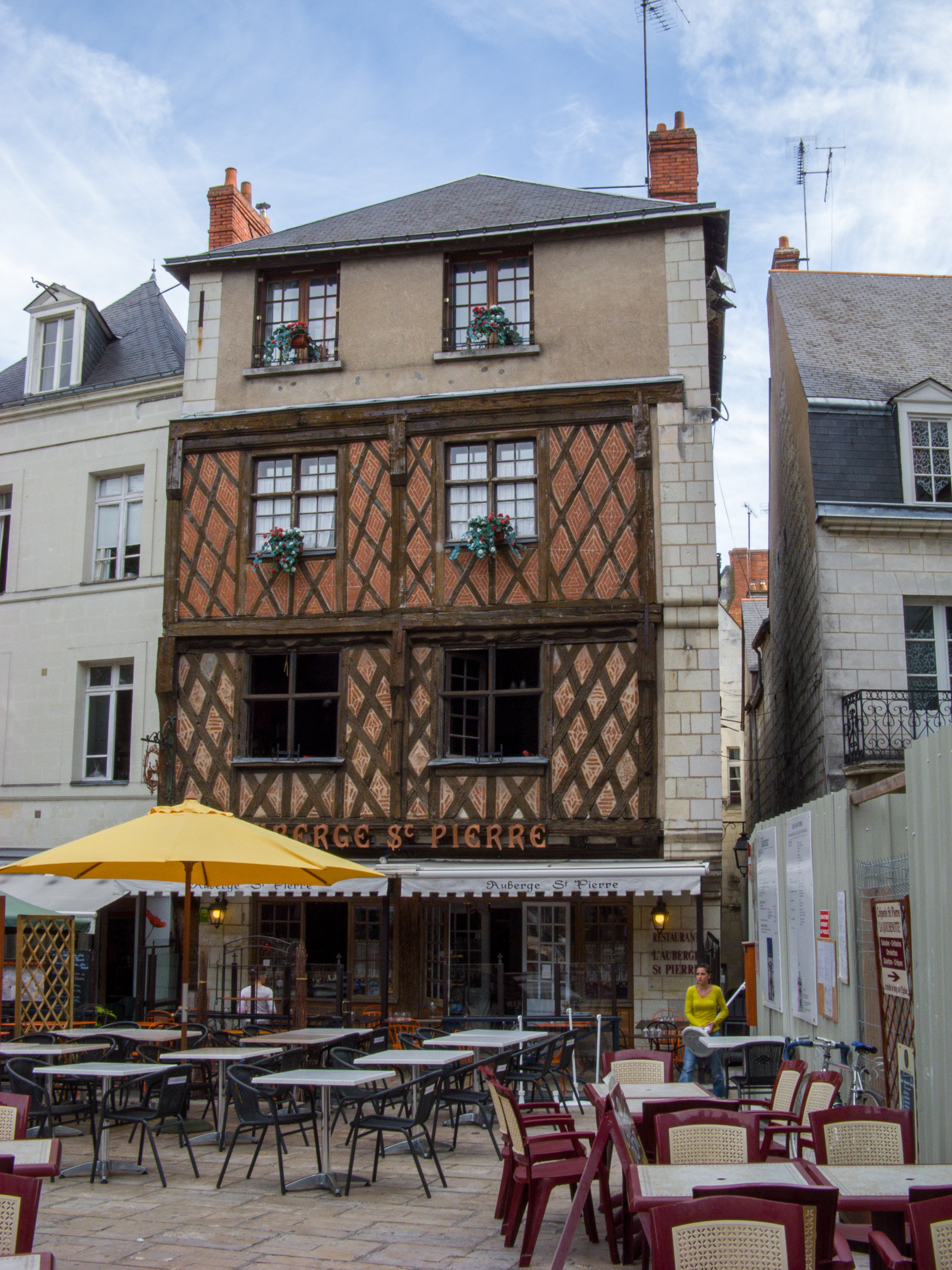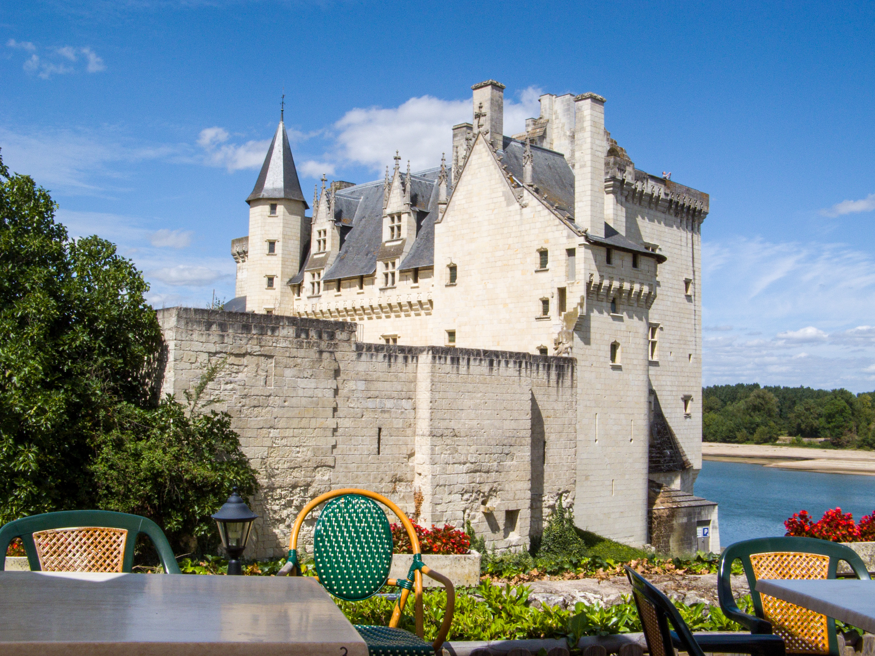 We rode together for a few minutes but it didn’t take long for them to leave me literally and figuratively in the dust. Shortly thereafter was the truly heavenly part of the day—I was riding along and saw a restaurant sign and decided it was time for lunch. When I stopped at the sign and looked to the restaurant terrace, the view was stunning! Directly to the left stood Chateau Montsoreau and directly ahead was the river—the sky was cyan blue with white puffy clouds and the temperature was a luscious 80 degrees. Sublime! My lunch was simple (steak-frites) but tasty and the service was friendly. What a perfect break.