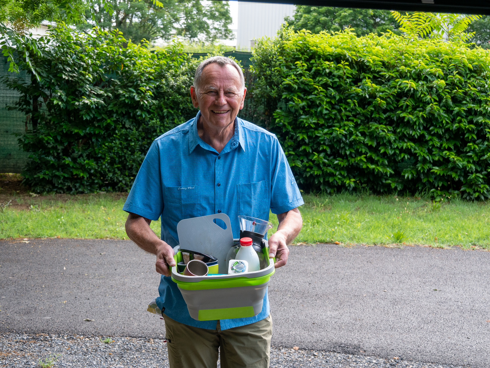 Zum Platz geradelt, noch schnell im Supermarche eingekauft. Nicht mehr in Pool, obwohl der klein aber fein war. Sara bereitete das Essen kalt, wir hatten auch Kontakt mit einem netten Nachbarn aus Leipzig. Faziniert hatten mich schon am Vortag das franz. Pärchen, das mit einem Citroen Kombi da war und wie sich herausstellte selbst und mit vier Hunden darin schlief.