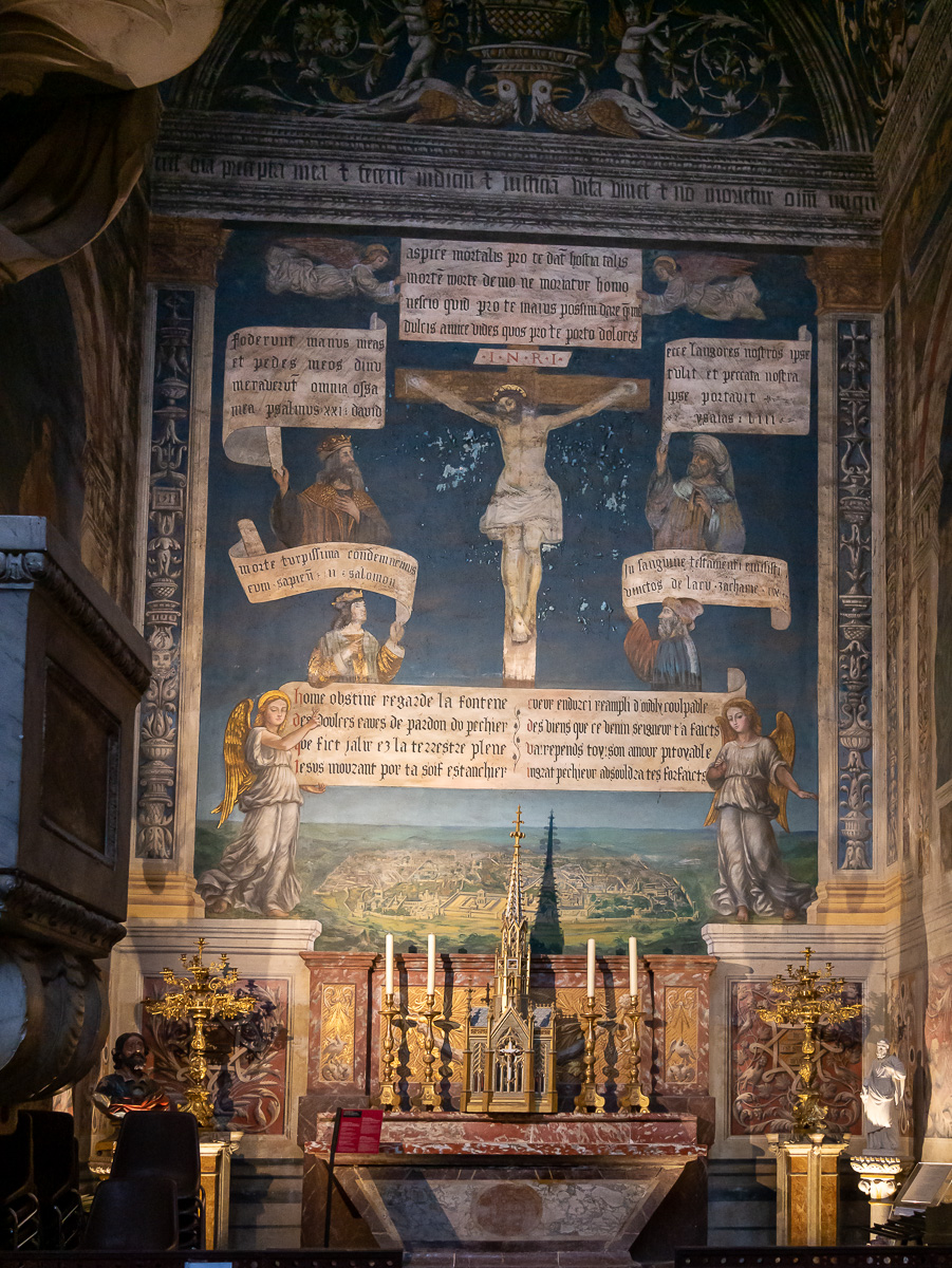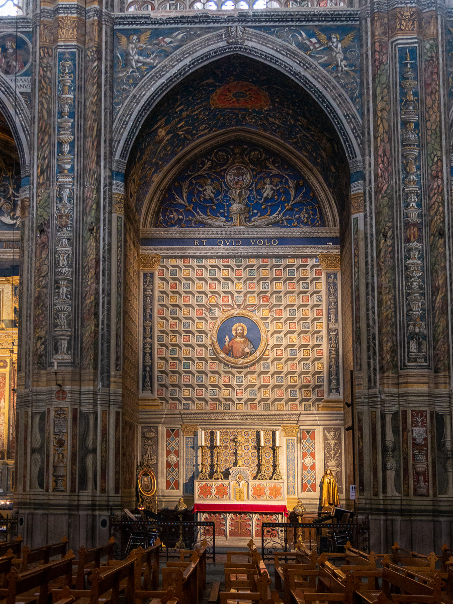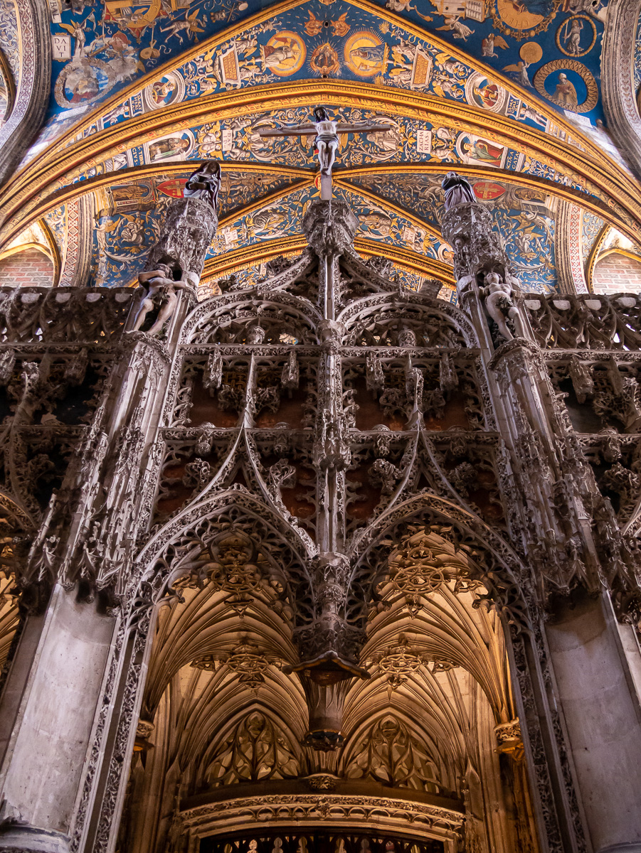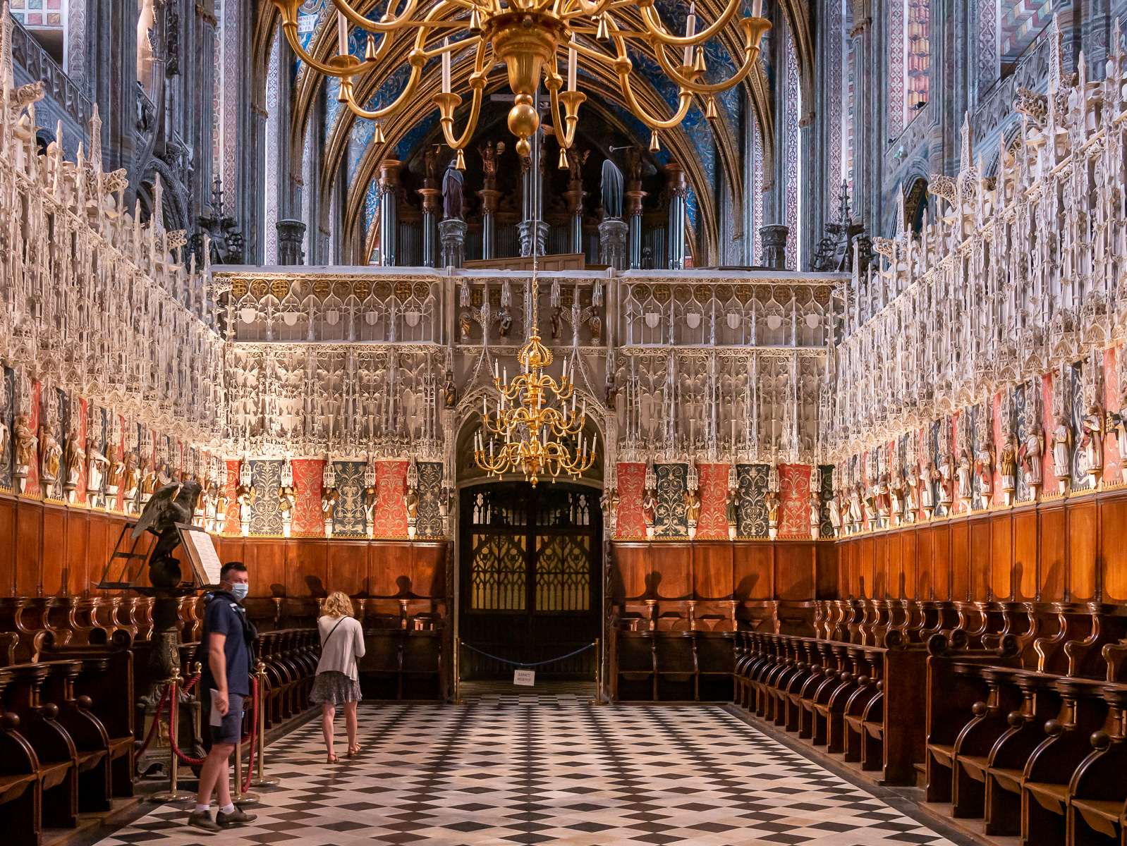 For about 30 years, I’ve wanted to visit this cathedral. It was incredible! Due to the brick construction and thick walls it was fairly dark inside but the darkness was lit up by the colorful painted walls and ceiling and intricate carving of the rood screen and choir stalls. We went in twice in the course of the afternoon just to soak it in.
