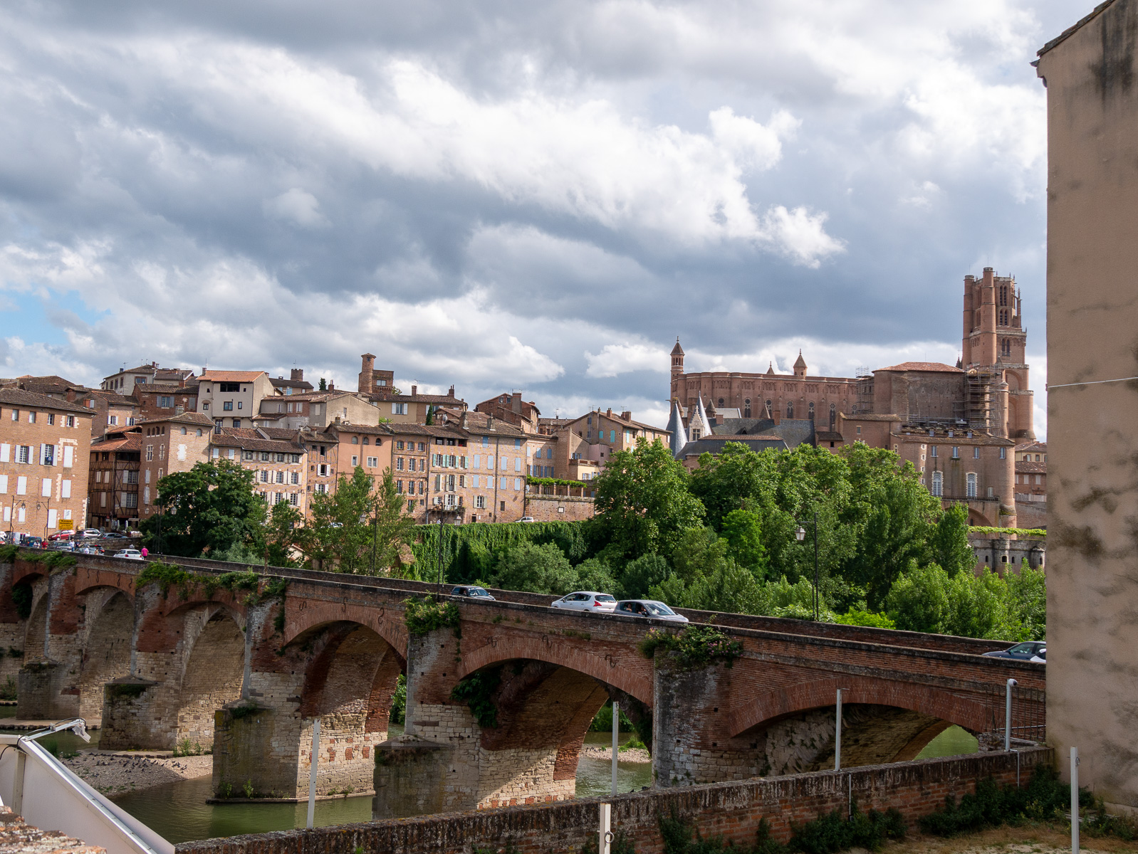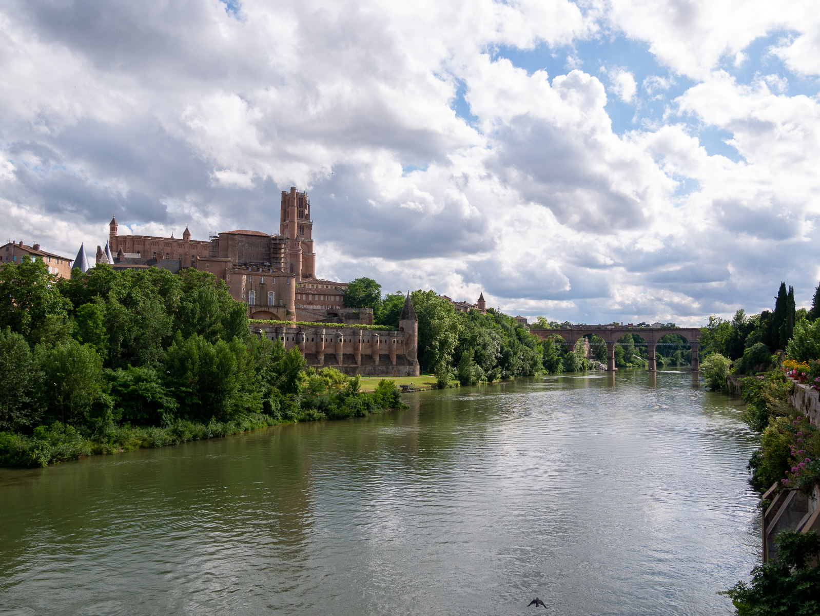 We got away at noon for the very short ride into the old town of Albi. The town is known for its huge red brick cathedral (the largest brick cathedral in the world) and the adjacent large bishop’s palace which now houses the Toulouse Lautrec museum.