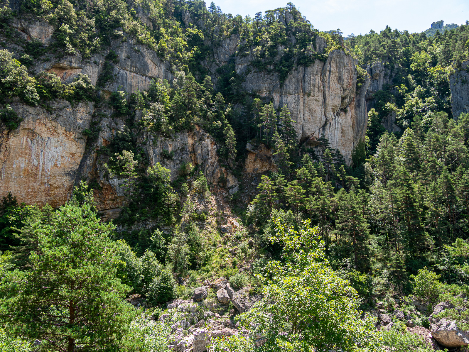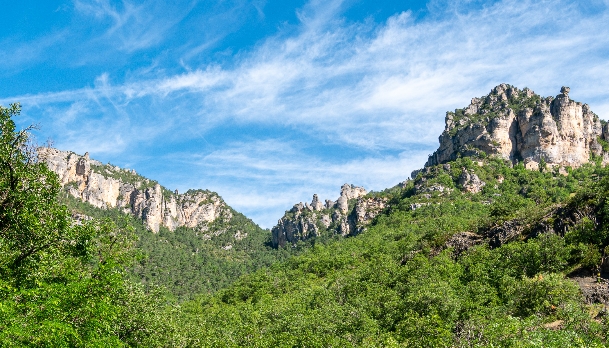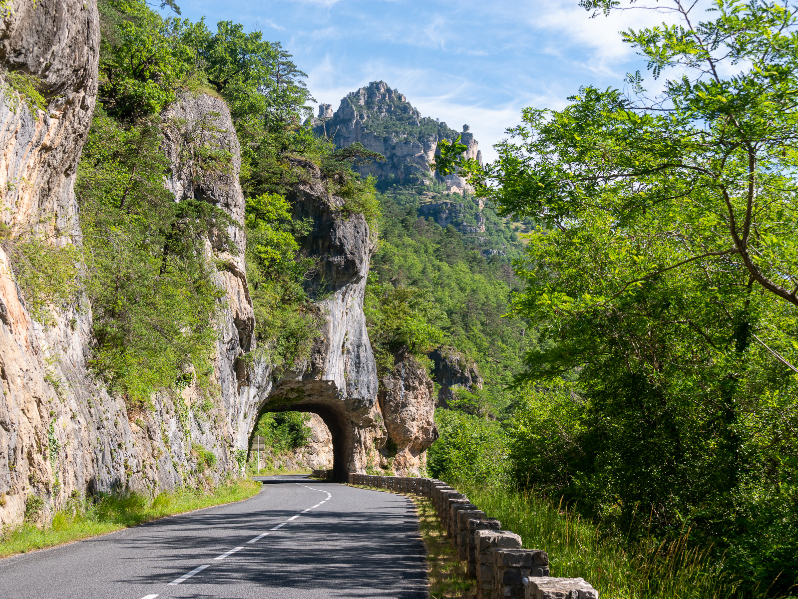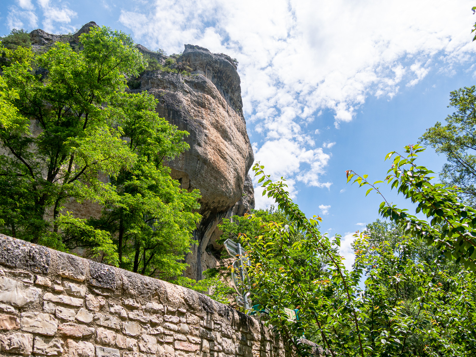 We had a lot of plans for the day so we got up at 8, didn’t linger over breakfast and by 9:45 were on the bikes heading out for a short ride. For years, we’d been hoping to ride our bikes in the Tarn Gorges and now the time had come. Over the previous day or two we accepted the reality that this area is not ideal for our kind of biking – no bike trails, only the narrow, curvy, non-flat road shared with RVs and motorcycles. In light of this, we decided to keep our tours short (10-20km per direction) so that at least we could get a taste of the experience.