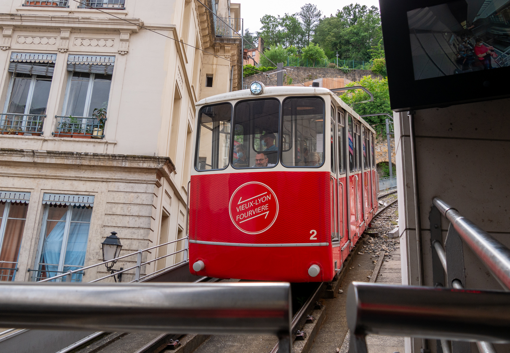 After we got parked and settled in (and reopened communication), we headed out for an all-too-brief visit to Lyon. The nice lady at the campsite had given us the necessary maps and information to take the bus into town. On the map, the bus stop looked a hop away. A 20-minute walk uphill is what awaited us. By the time we got on the bus we were both beat and used the half hour bus ride to recuperate.
