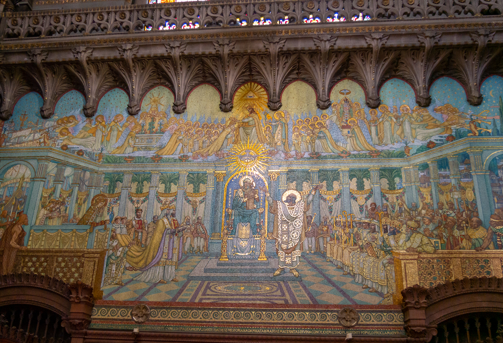 Afterwards we rode the funicular up the hillside to the magnificent Basilica of Notre-Dame de Fourvière and rested our tired bodies as the strains of the Mass echoed around us. We took in the view of the city from the promenade behind the Basilica and after returning down the hill wandered back across town to catch our bus back “home”. There were cafes filled with young people – I wasn’t sure whether to be delighted at the liveliness or horrified at the throngs.