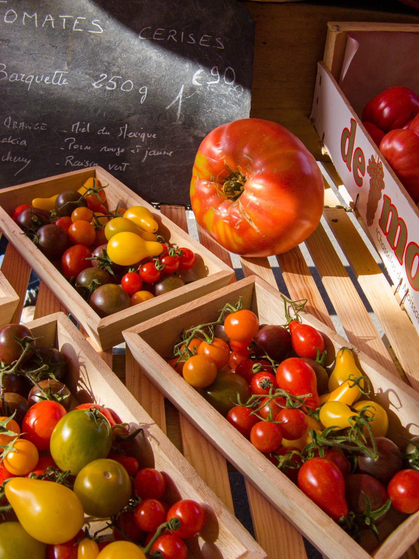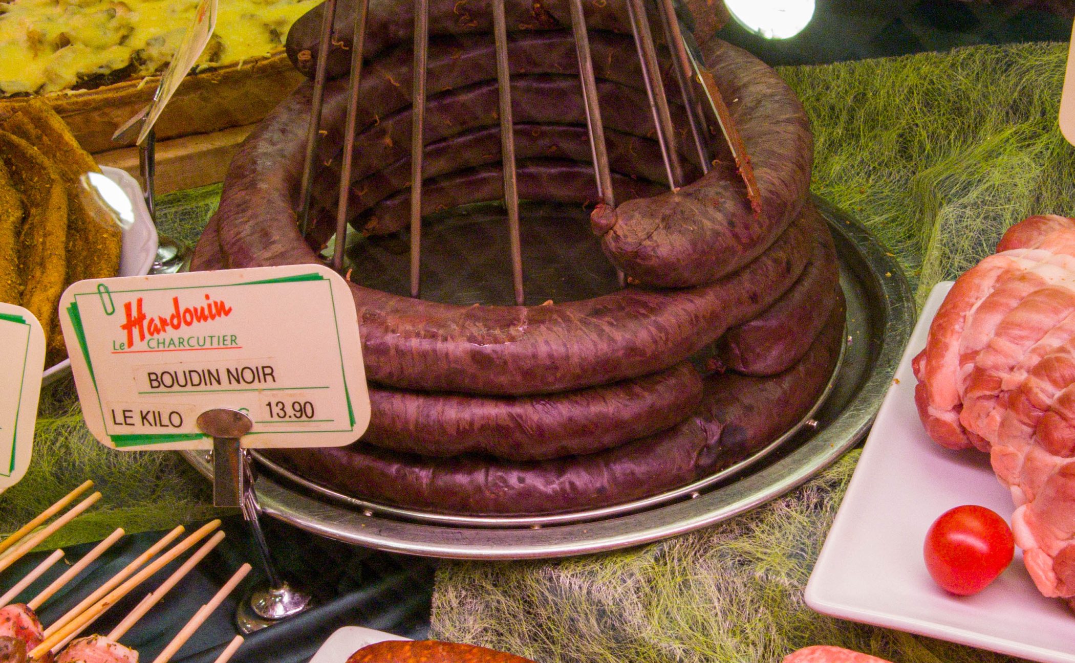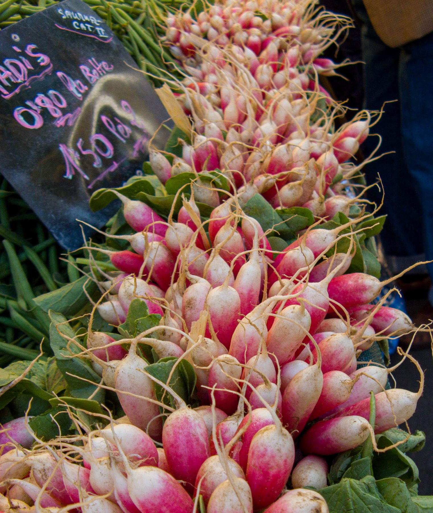 The next stop was les Halles, the food market. The outdoor farmers’ market was in full force when I got there, tables piled with beautiful produce, fresh eggs, local wines—it was very difficult not to buy one of everything, so I took lots of pictures and settled for buying a cantaloupe. Then it was on to the indoor portion of the market, the “deli” area. Oh my God! There were also a few fruit/vegetable stands but mostly the large hall was filled with cheese vendors, butchers, bakeries, fish markets, deli-stands with olives and prepared foods. It was almost (note that I say “almost”) sensory overload. My, oh, my. I composed a picnic fit for the Gods.