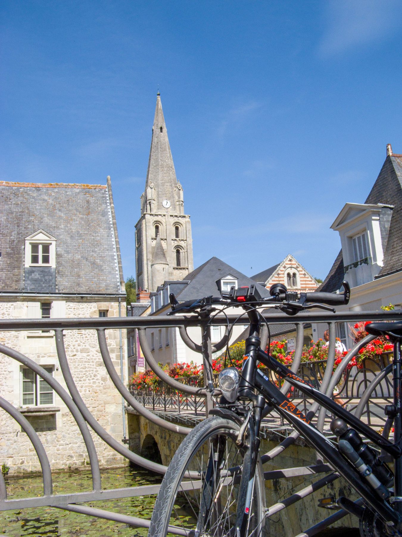 After riding the train to Langeais I made my way to the center of town and ate my heavenly picnic on a bench with the chateau on my left and a mill pond and a view of the church to the right. [And yes, that pastry snack was only an hour and a half earlier. What can I say; I did burn quite a few calories riding in the heat of the day…] After my leisurely picnic I made a short stop at the church and then got out of town at around 2.