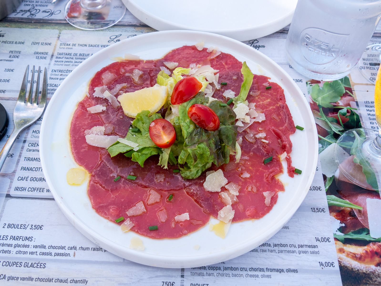 Uns und WoMo fit gemacht und erstmal Richtung Toulouse auf der Landstrasse gefahren und dafing es dann schon heftig zu regnen und gewittern an, dass Sara fragte, ob wir stehen bleiben sollten. Wir sind durch eine grüne Landschaft gefahren, sahen wegen des Regens auch nicht viel und ladeten schließlich in Trebes auf dem Standplatz einer Olivenmühle am Canal du Midi (Bilder). Nachdem sich die Sonne zeigte, gingen wir in dem kleinen Ort spazieren, machten nette Bilder (Locavelo) und aßen dann auf der Promenade direkt am Canal( Carpaccio und Pizza je ½).