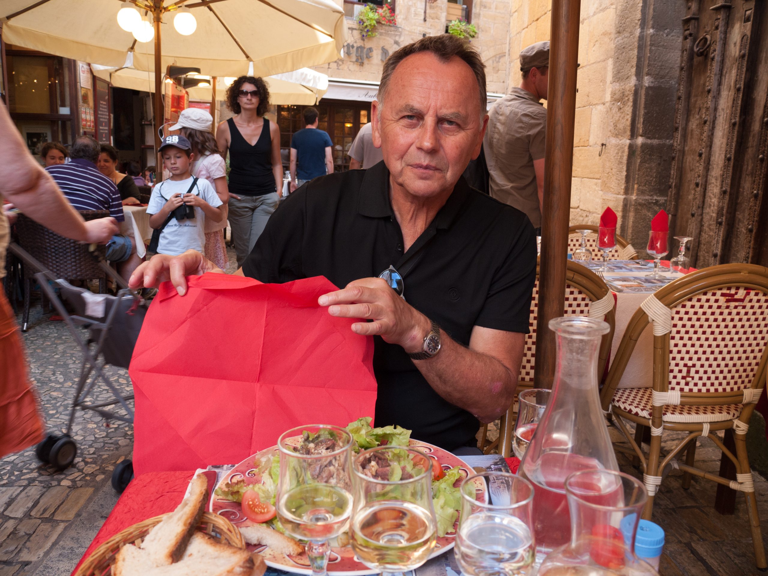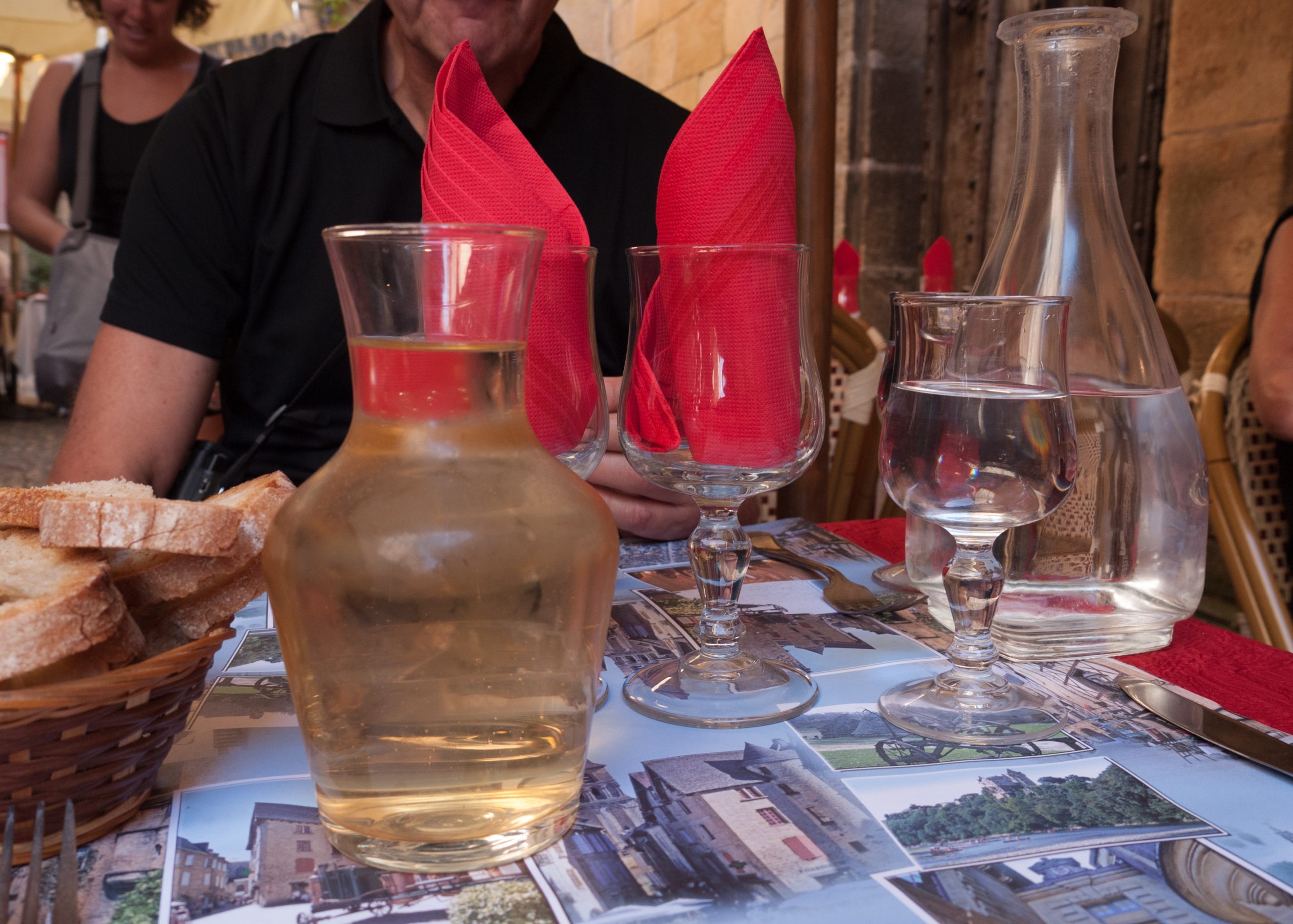 After breakfast we had some extra time so we did laundry – our bike clothes were distinctly aromatic. At 11 we got on the bikes and headed to the train station in Souillac, where we locked up the bikes and caught the bus to Sarlat. A lovely drive covering the route that we rode yesterday, through the Dordogne Valley.