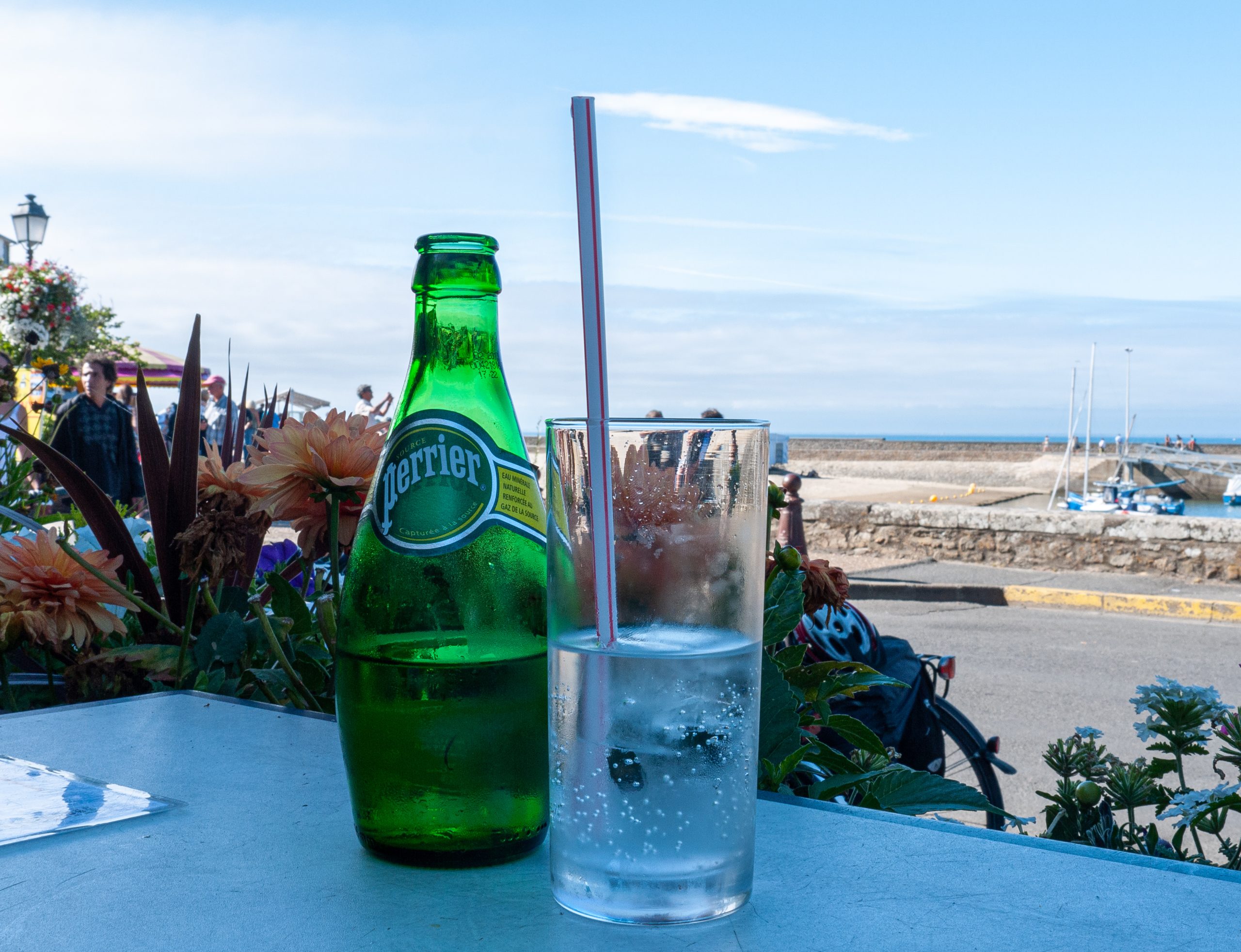 By this time the sun was FINALLY coming out (haven’t seen that much of it this week) and it was getting warmer. When I arrived in Piriac I was dying for a cold beverage (one thing I really like about France as opposed to Germany is that cold drinks are COLD and not room temperature). Although I’ve gotten accustomed to the German way, I do still enjoy an ice-cold drink on a hot day. I sat at a harbor café and reveled in my cold Perrier.
