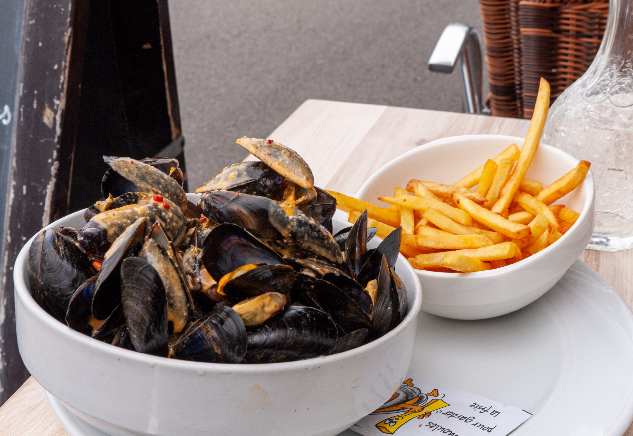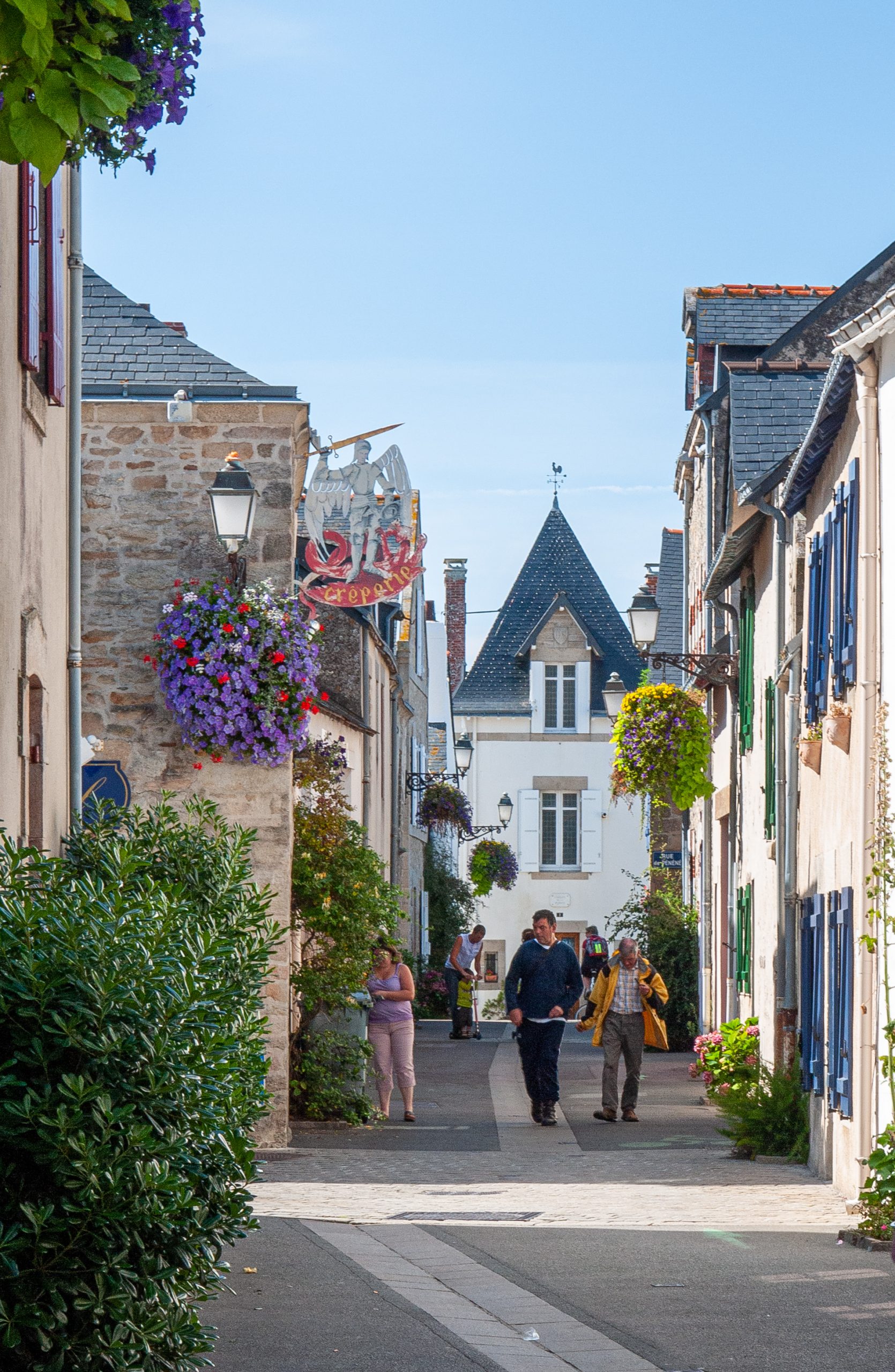 Once I arrived in Le Croisic, another tourist-filled port town, I went on the prowl for a lunch restaurant. After walking the length of the promenade I finally found a place that spoke to me. My search paid off – I ate a very tasty Moules-Frites (steamed mussels with fries), the mussels being served in a spicy saté sauce. Boy, was that tasty! With it I drank a glass (or rather a mug) of hard cider which one often finds on the menu in Normandy and Brittany.