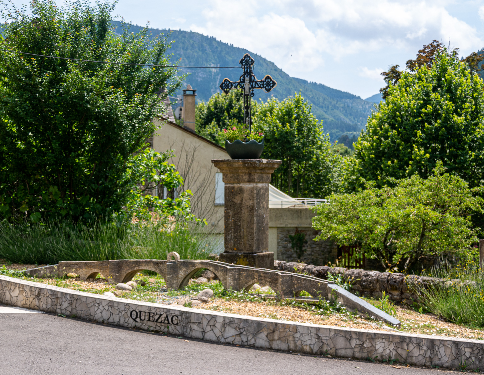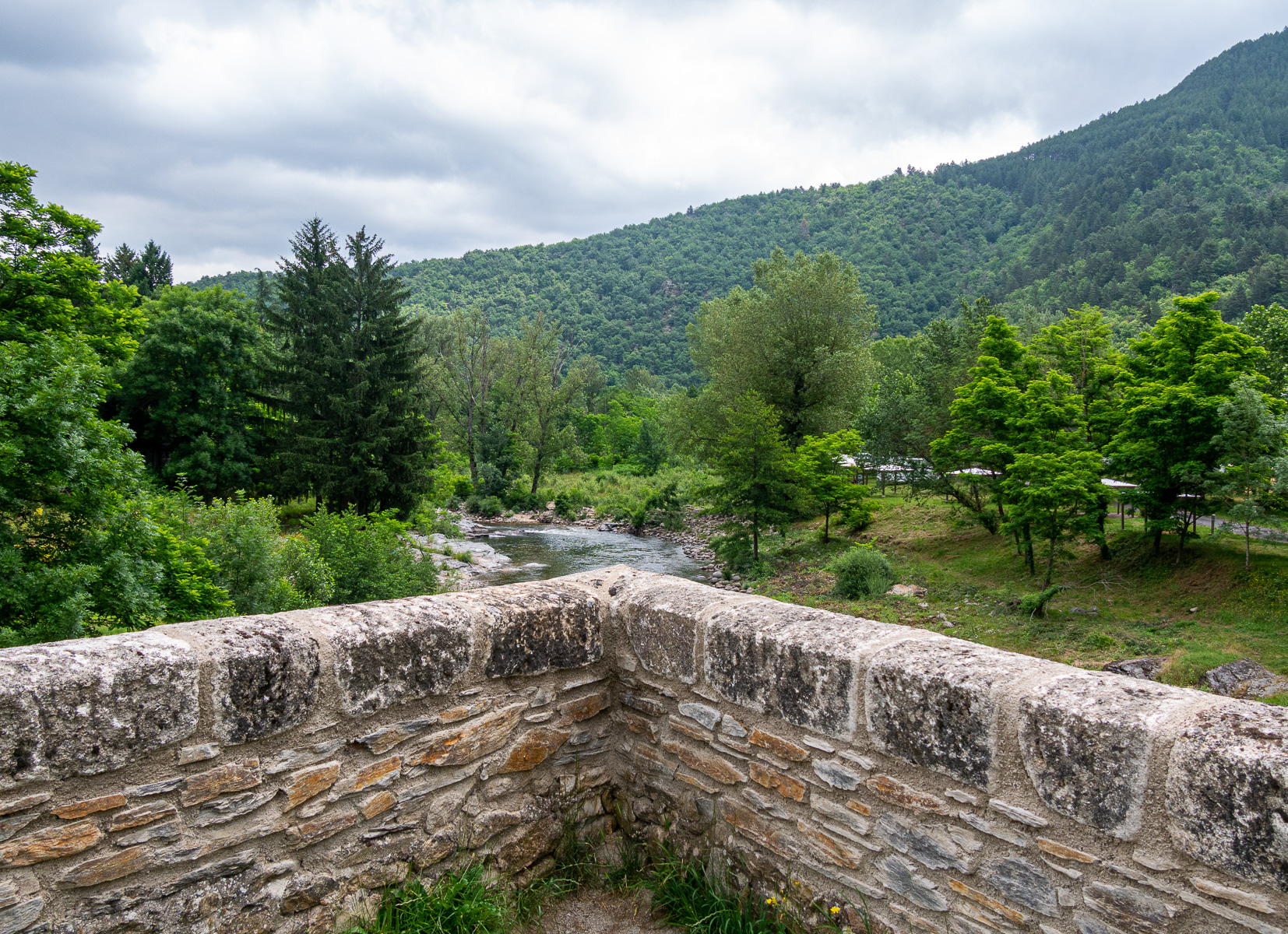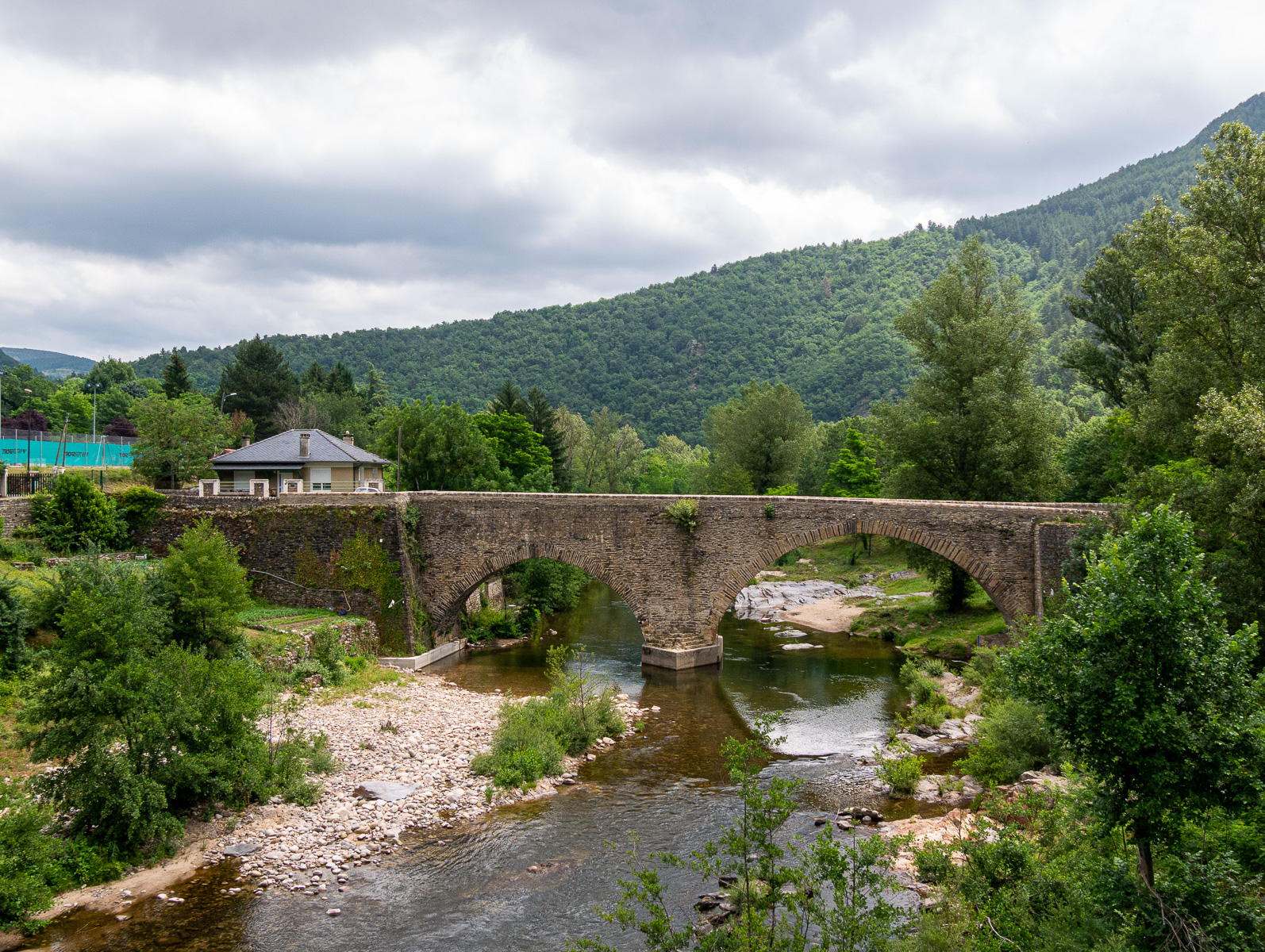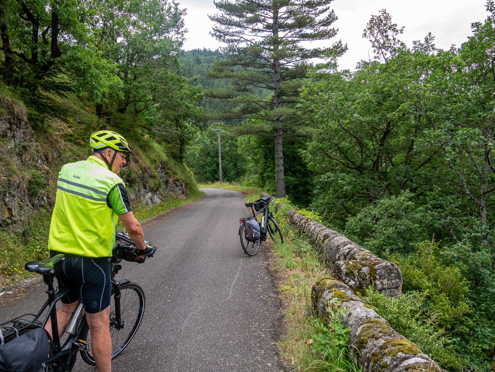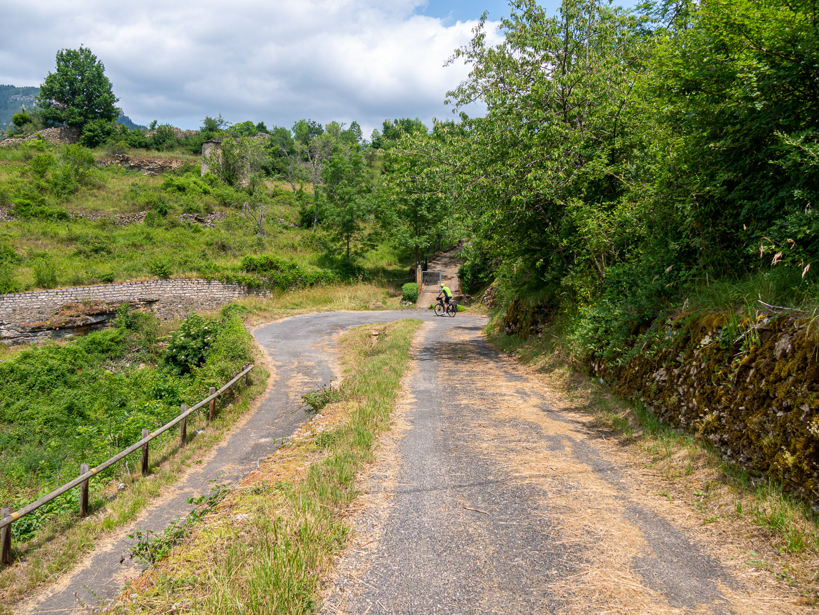 The weather was improving so we rode a bit around Ispagnac, in search of the river, first over the fields (not accessible there by bike…) and then in the other direction where in addition to direct river access we found an even prettier medieval bridge at the village of Quézac.