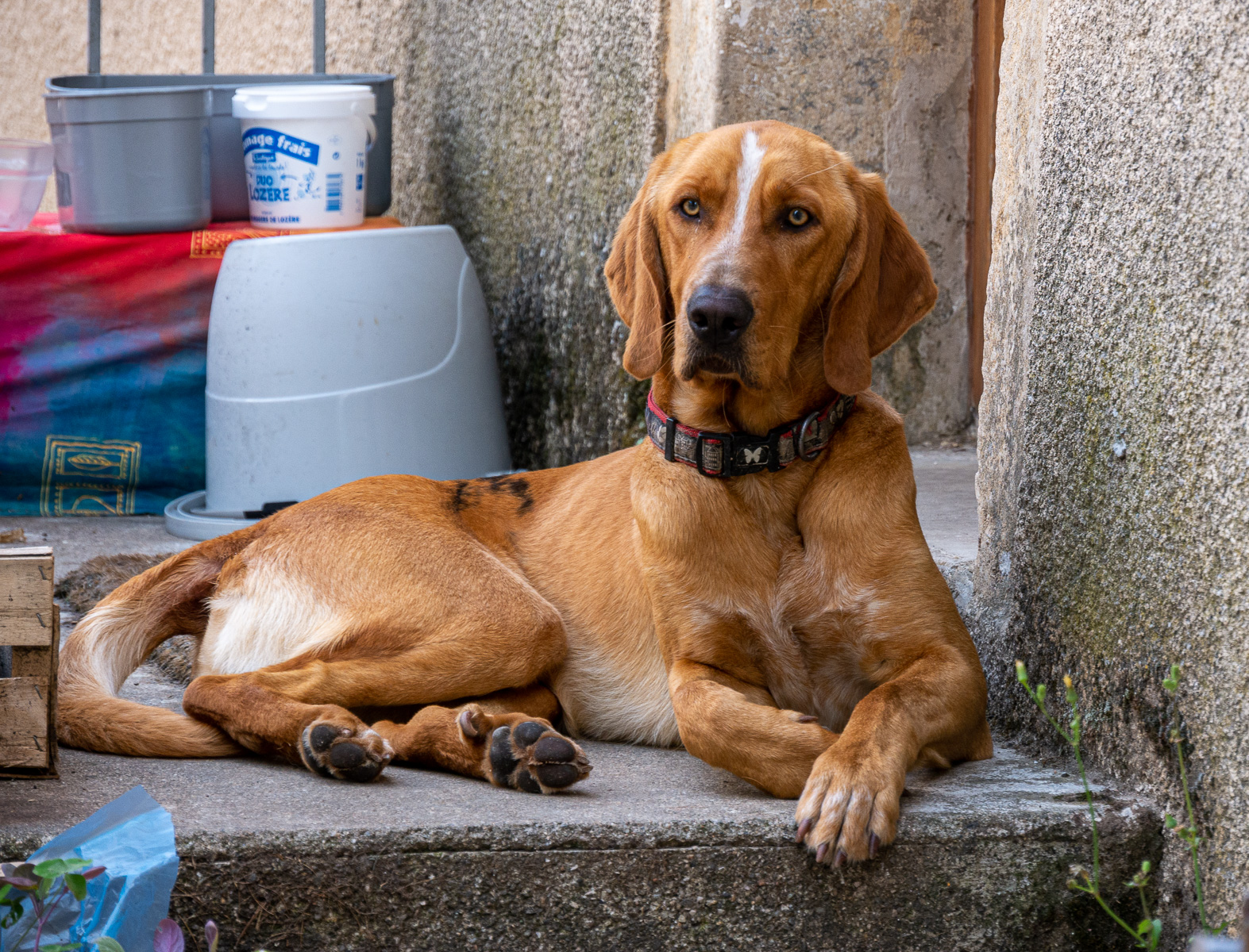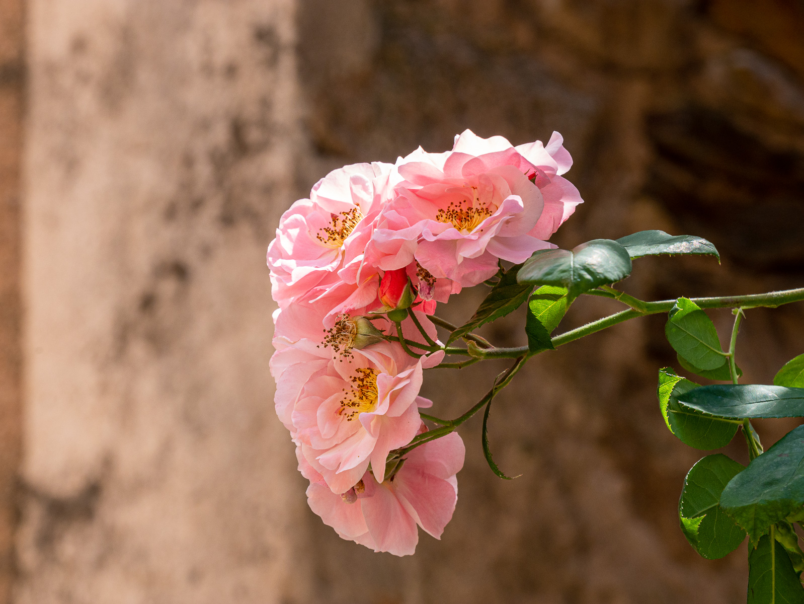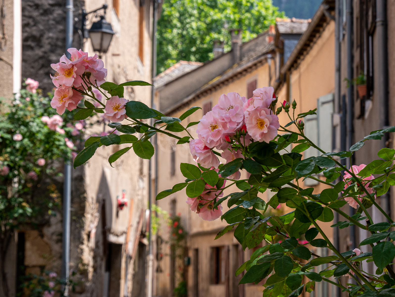 Noch ein Stück aufwärts gabelte sich der Weg, links steil weiter aufwärts, rechts runter. Da wir die Bergstiefel vergessen hatten, entschieden wir uns für rechts. Urige, kurvige, kleine geteerte Straße vorbei an Bauerhäusern und entlang einer „Rue de source minerale“ zurück zum Campingplatz. Sara wollte noch Blumen im Ort fotografieren, ich schwankte zwischen schwimmen und aufräumen., nach Blick Letzteres. IMMER noch kein Netz. Ich hatte in Florac mal kurz Infos abgesetzt, die wohl von dort später gesendet wurden.