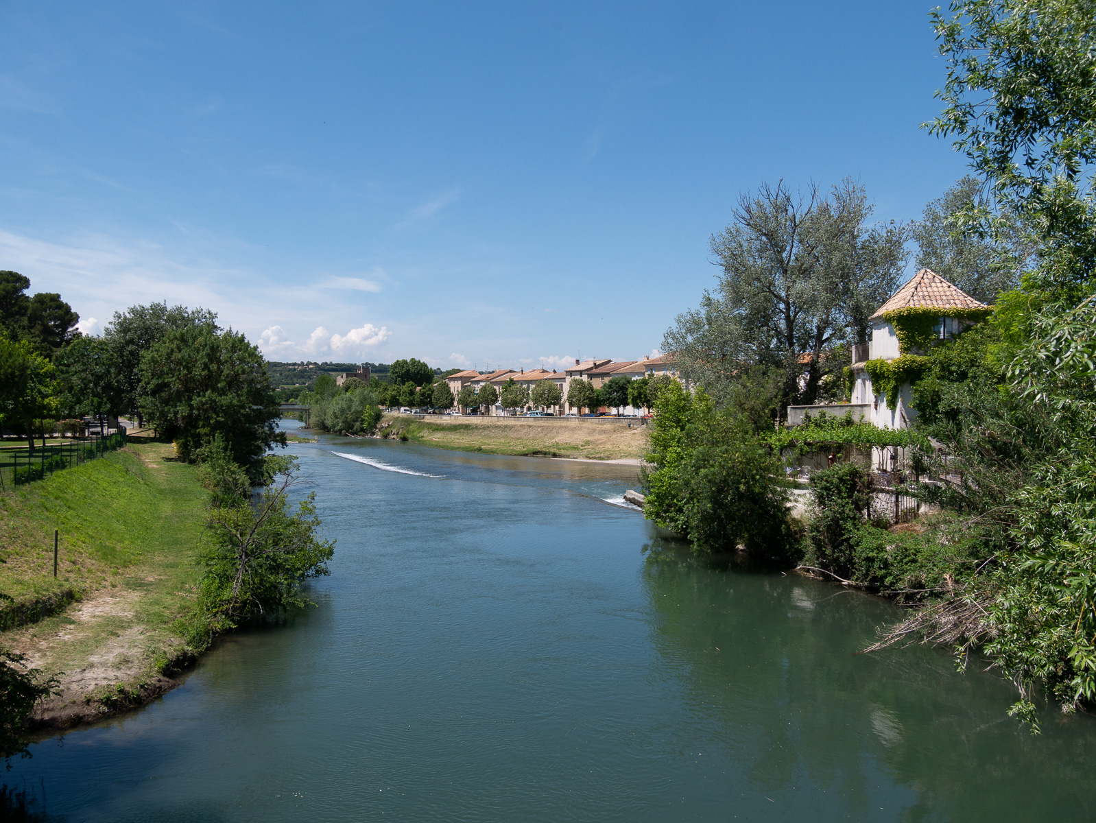 Bisschen spät los über die Felder nach Sorgues, dort einen Brunnen fotografiert mit Blechradlerfiguren und gelben Wasserspielen (wie die Trikotfarben der Gewinner) da die Tour de France Etappe dort am 7.7. startet. Sara hatte inzw. in Boulangerie Toast gekauft und wir machten eine kleine Rast im Papstgarten mit kleinem Schloss und großem Biotop (mit Entenfamilie, Koi u Goldfischen und einem lauten Frosch). Weiter nach Bedarrides, vorbei an Courthezon durch Chateauneuf du Pape zurück zum Campingplatz. Pool und cool und ein Magnum Eis.
