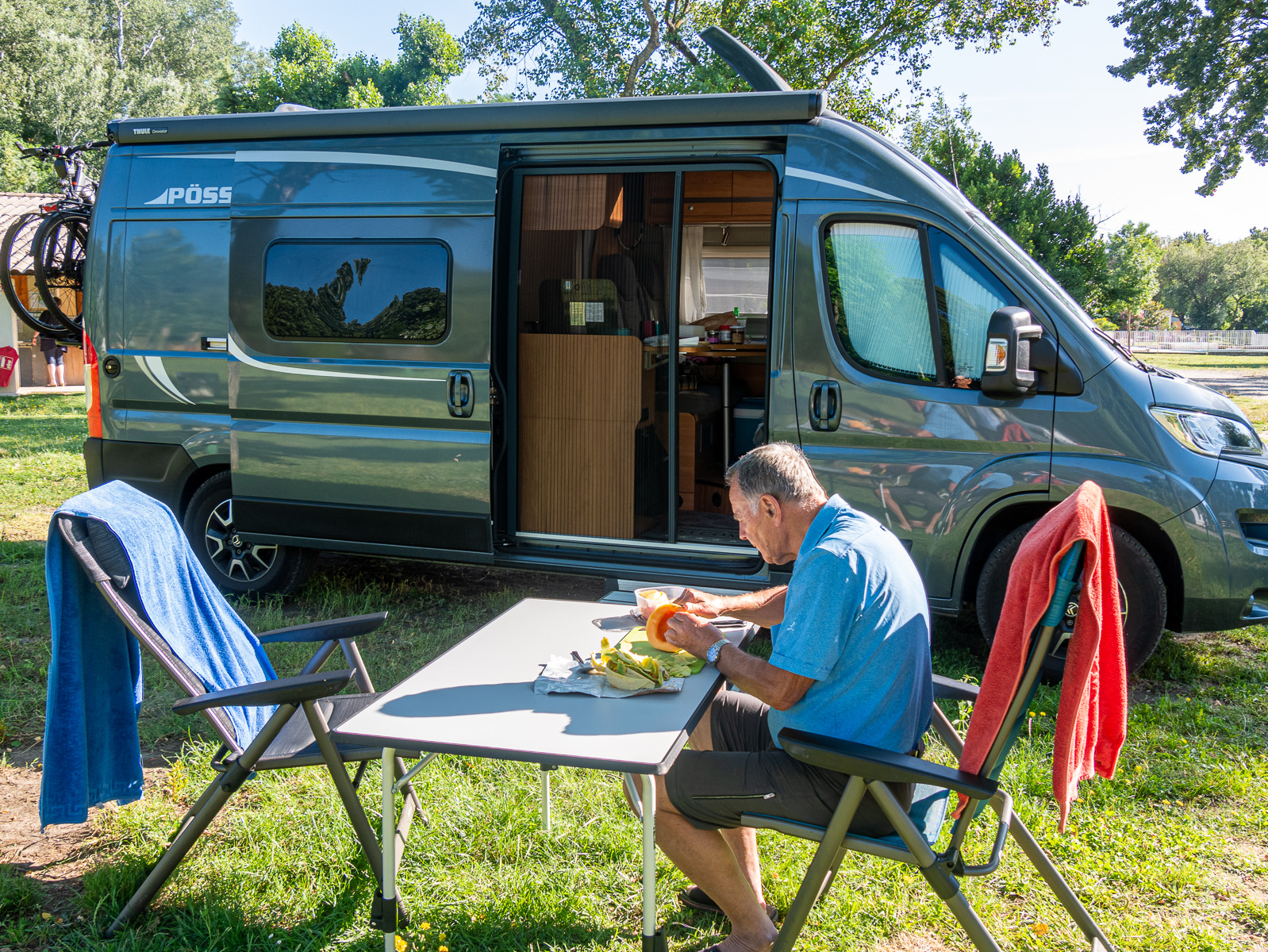 Wir eingecheckt im Campingplatz und weils so schön war noch eine Spazierrunde gedreht entlang des Sees. Am Rückweg sahen wir am Platz einen Grillwagen und es gab amerikan. Burger. Das musste sein, denn kochen wollte ich Sara nicht mehr zumuten. So sah ich beim Essen noch einen Teil des Spiels Schweiz : Spanien mit der Elfer-Misere. Ich habe schnell und gut geschlafen und erhoffte mir einen tollen Radltag rund um den See.