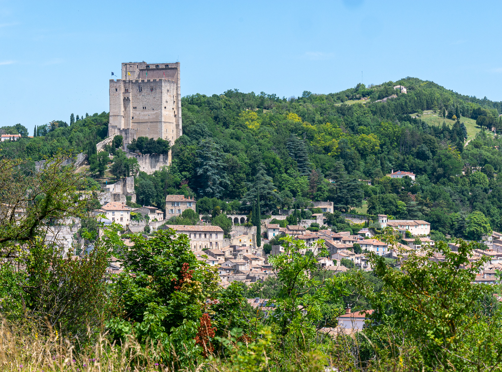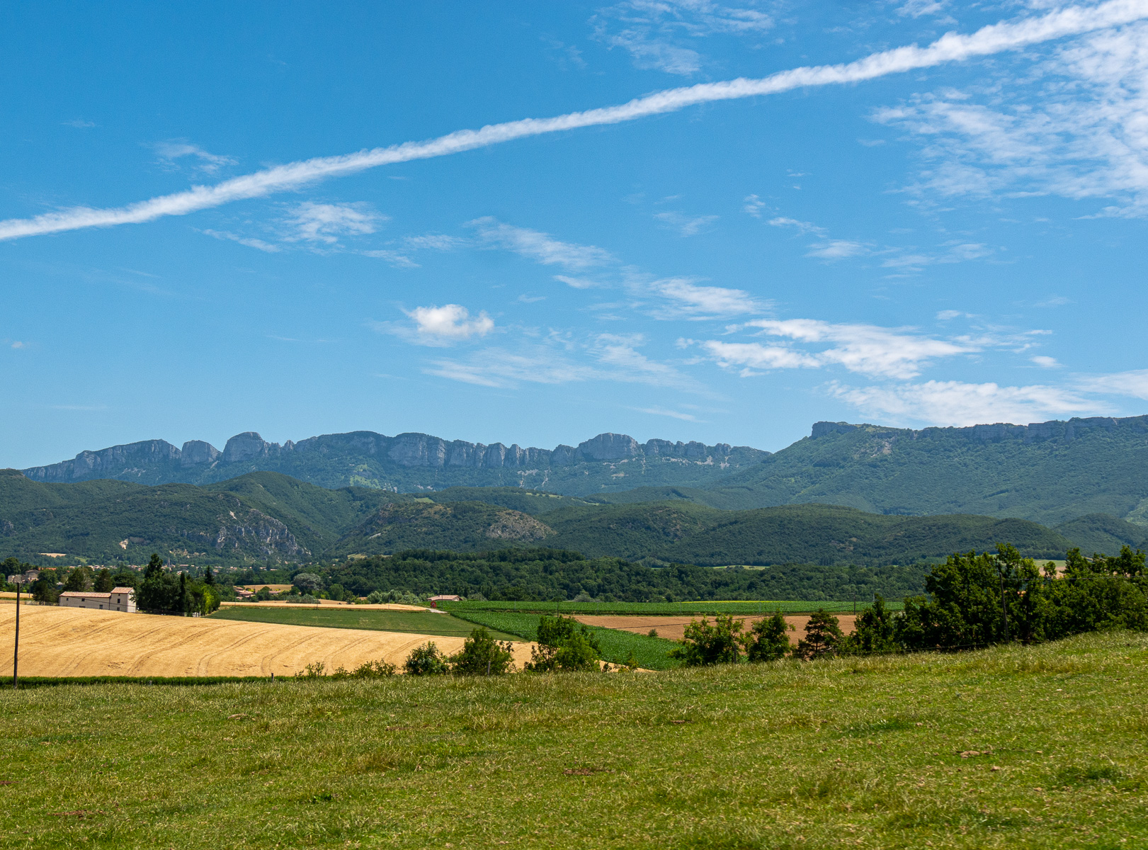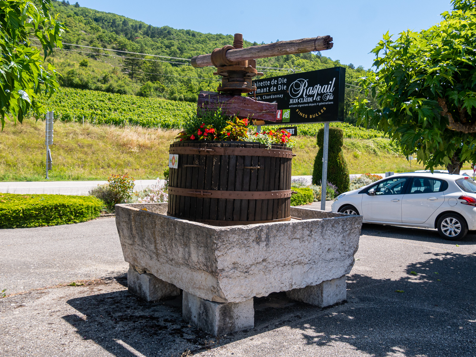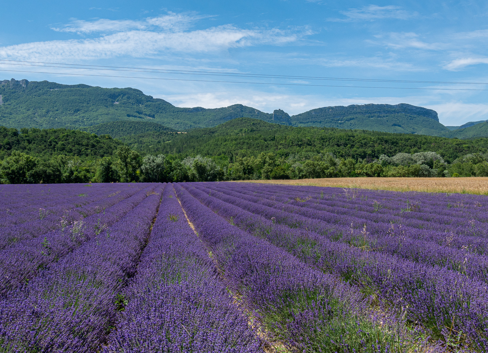 Abschied vom C-platz mit Fotos von den Seerosen und auf die Landstraße nach Crest. Frohen Mutes, denn in Montélimar sahen wir bereits kleine Felder. Und dann waren wir in Crest und sahen Wein- und Weizenfelder. Also weiter nach Die und da gab es einige Felder. Wir fotografierten vorsorglich und fuhren etwas weiter. Kein Feld, das Tal wurde enger.