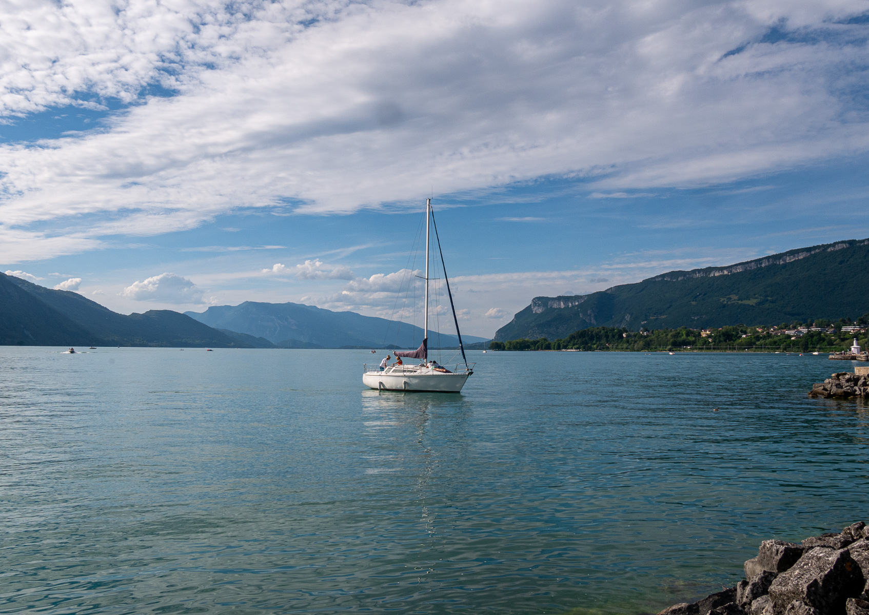 Sara, beinahe hätte ich es vergessen, hatte gecheckt, dass die Tour erst am 6.7. dort vorbeikommt und das war, so leid es uns tut, zu spät, denn da sollten wir schon näher Richtung Heimat sein. Wieder nix! So, weiter auf der Autobahn, Richtung Chambéry und weiter nach Aix-les-Bains am größten See Frankreichs, dem Lac du Bourget mit dem größten Süßwasser-Jachthafen Frankreichs.