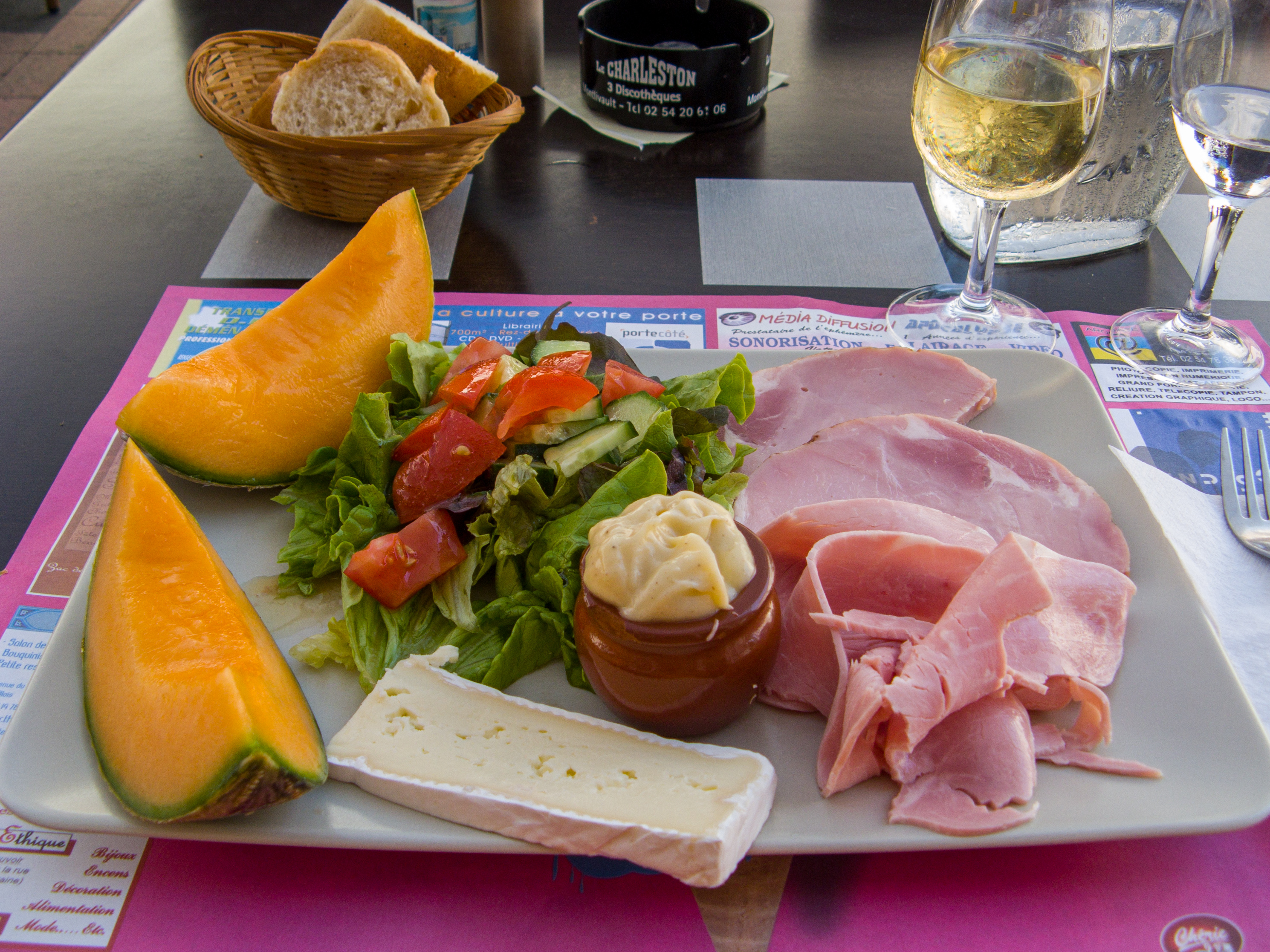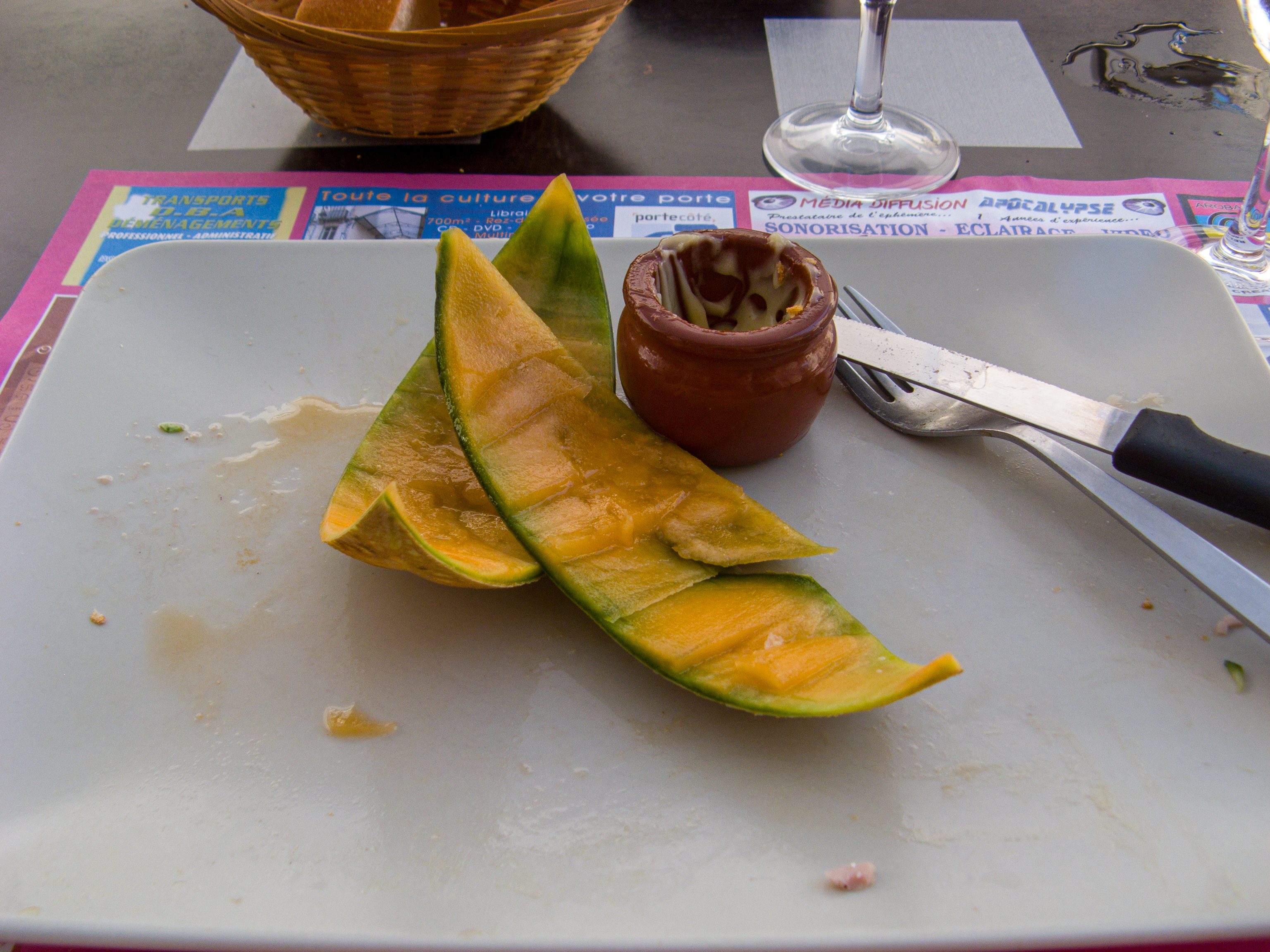 I enjoyed a simple lunch at an outdoor café at the foot of the steps leading to the chateau. My lunch was accompanied by two wedges of the most perfect cantaloupe melon I’ve ever tasted. Ripe, full-flavored, juicy, simply heavenly.