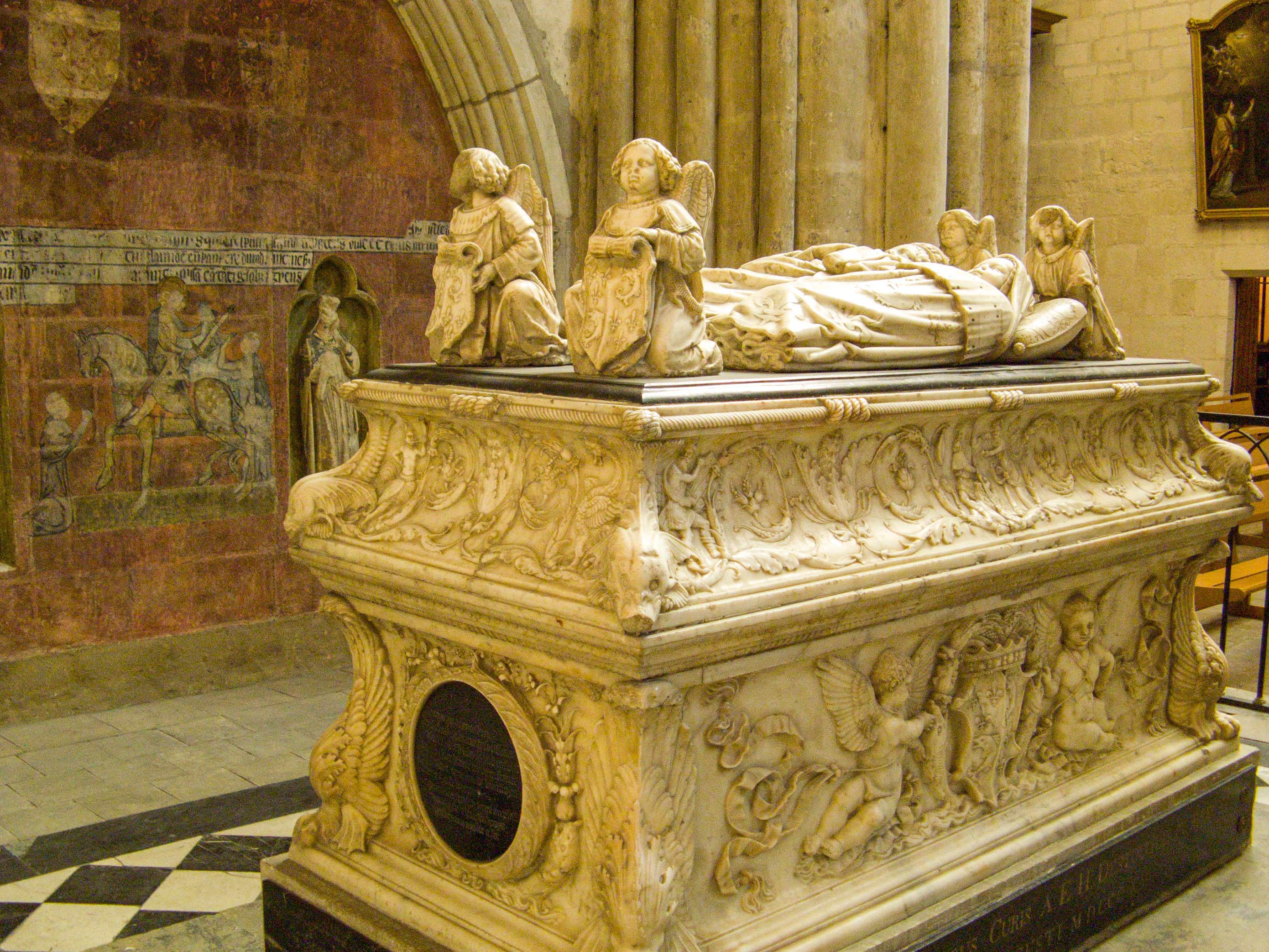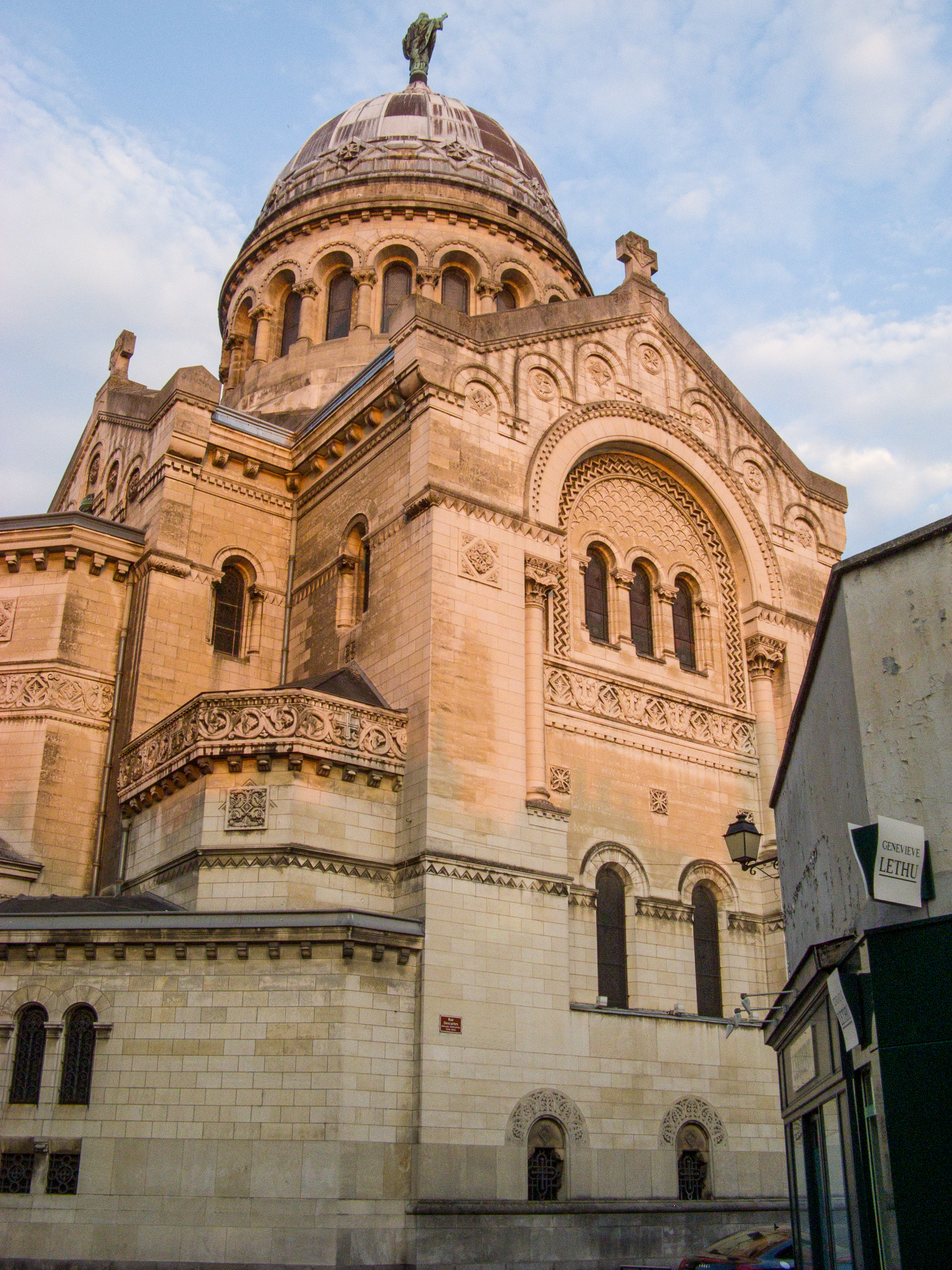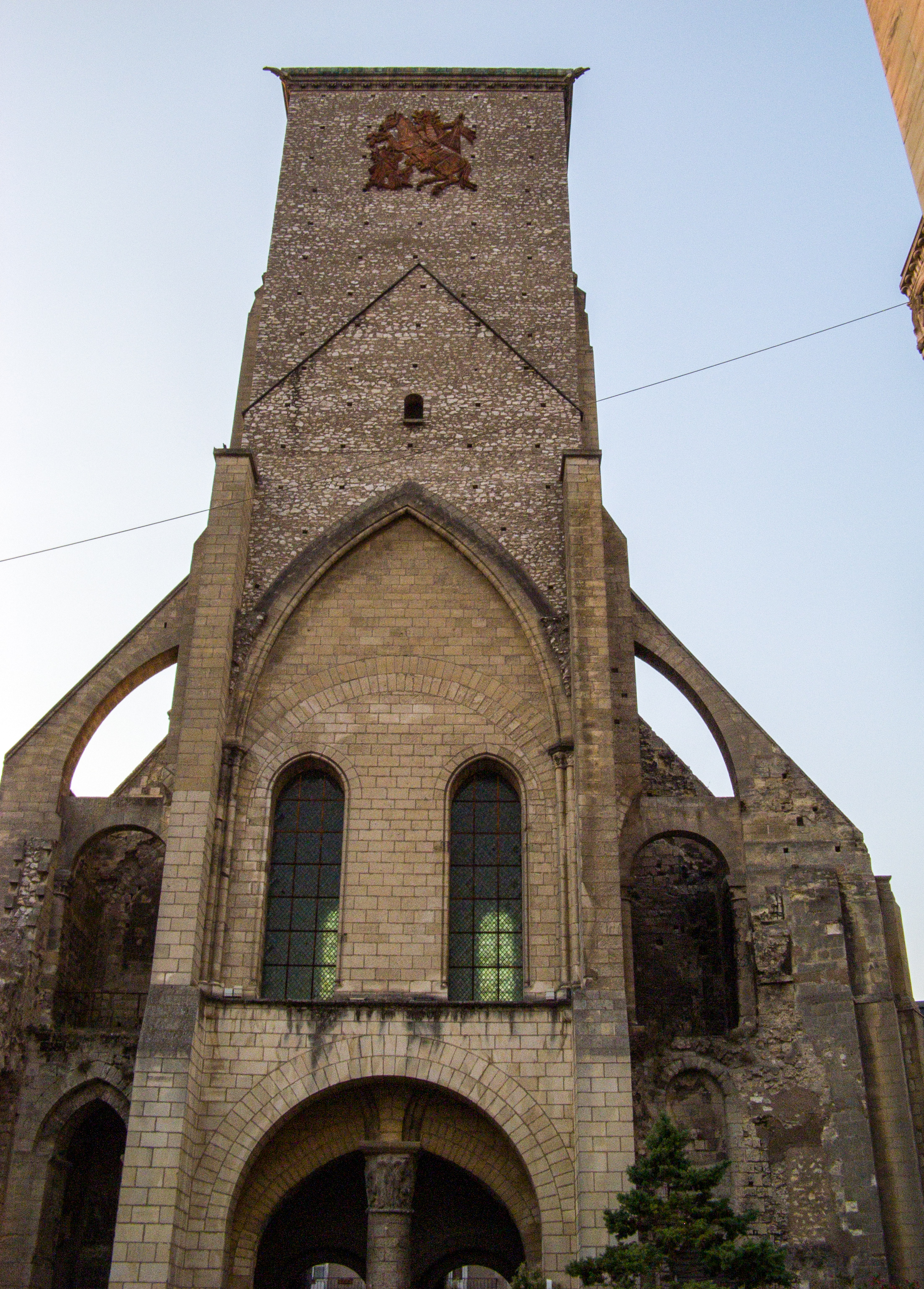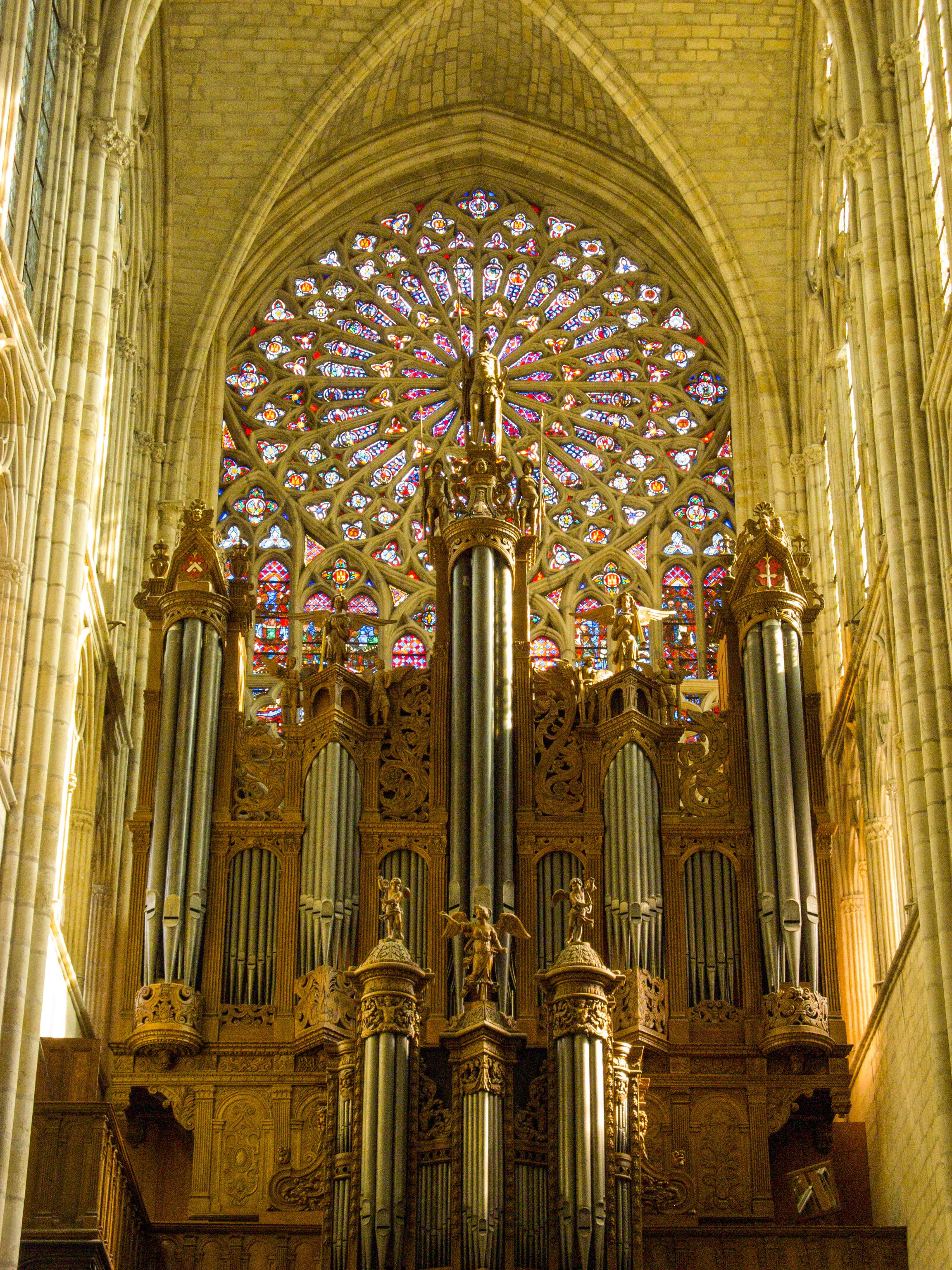 The afternoon was spent settling into the hotel (air-conditioned, yippee!) and wandering around Tours. As opposed to Blois, the cathedral in Tours is definitely on my top 10 list. First the very cool fat, round spires and lots of slender flying buttresses on the outside, and then on the inside, stained glass windows and architectural accents from many centuries making it seem like a living being and not a dead space.